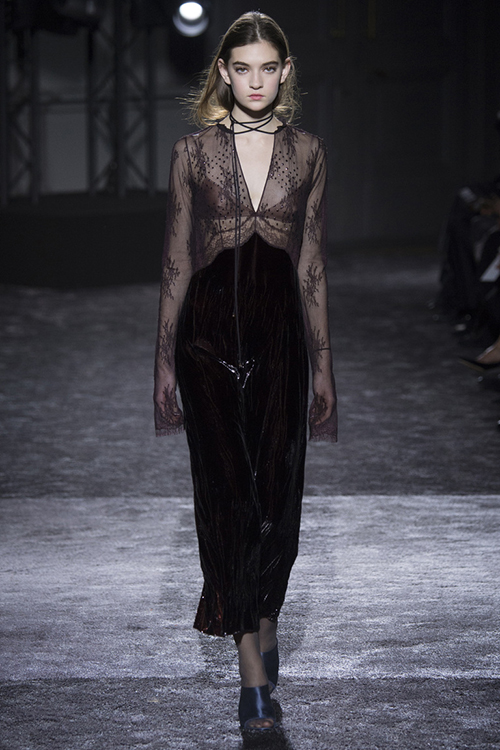 Aksominiai drabužiai. Tokio audinio apdarai – ne naujiena, tik dizaineriai siūlo juos dėvėti įvairiomis progomis. Drabužiai iš karališko audinio skirstomi į kasdienius, darbinius ir vakarinius. Vakarui garsūs mados namai pristato minimalistinio stiliaus sukneles žemiau kelių ir iki grindų. Sodrūs raudonos, žalios, juodos spalvų apdarai sukuria prabangos aurą, todėl jokių papildomų detalių nereikia. Kai kurie dizaineriai sunkų aksomą papildo lengvais nėriniais, kad paprasto tiesaus kirpimo suknelės atrodytų harmoningai ir puošniai. Aksominė prabanga braunasi ir į dalykinį įvaizdį. Apdarai subtilūs, tačiau elegantiški ir įdomūs. Kūrėjai dalykinius drabužius puošia rauktiniais ir raštais. Taip pat moterims siūlo patogius vyriško tipo kostiumus, susidedančius iš pailginto švarko ir tiesių kelnių arba siaurėjančio sijono. Ryškiausios laisvalaikio naujovės – aksominiai kombinezonai ir trumpos, apačioje sutraukiamos striukės.