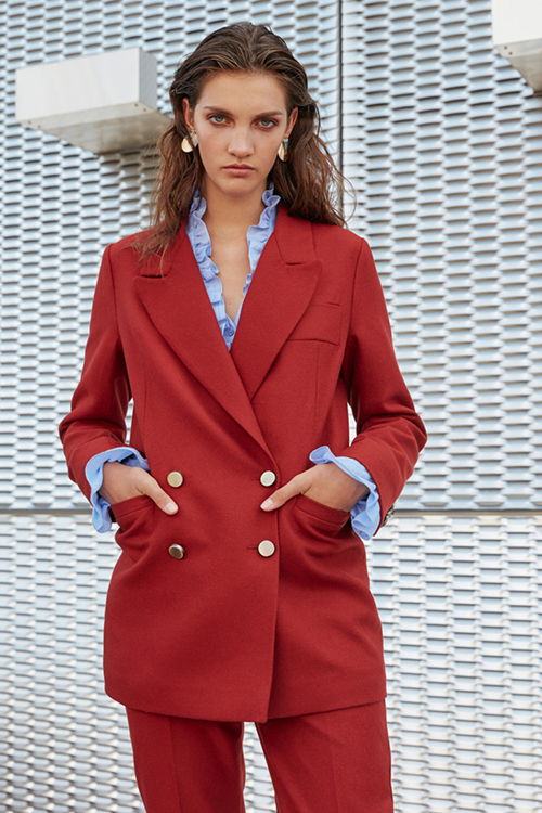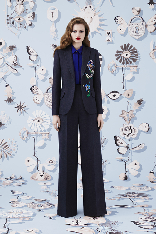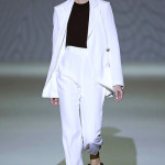 Vyriškas komplektas. Jau kelis dešimtmečius vyriški languoti arba dryžuoti kostiumai yra moteriškos aprangos dalis. Laisvo kirpimo švarkai, pabrėžiantys pečių liniją, ir plačios kelnės sukurti norint parodyti moteriško silueto subtilumą ir gracingumą. Juos dėvėti rekomenduojama su aukštakulniais.