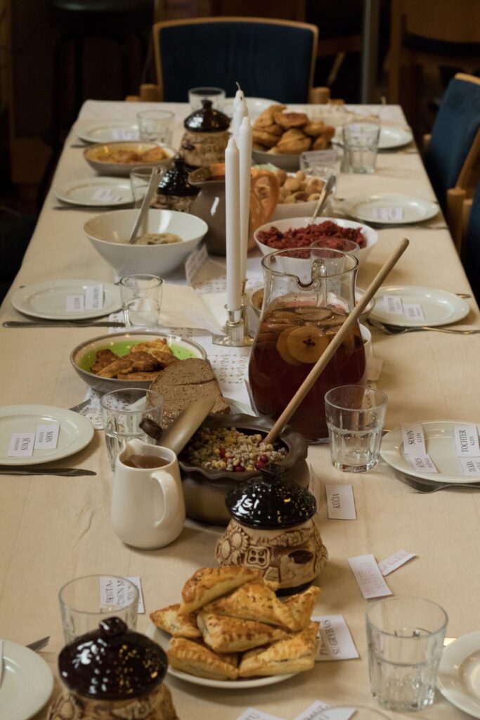 artėjančių švenčių dvasią. Austa staltiese nutiestas, 12 patiekalų Kūčių stalas –