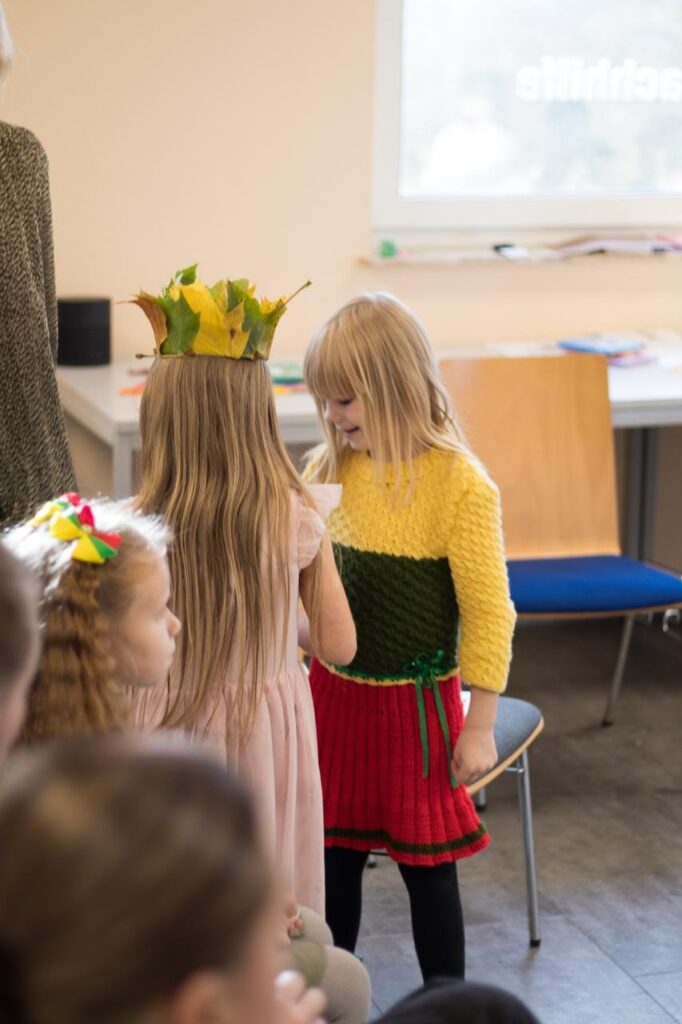 simboliškai „karūnavosi“ pagal savo šeimų kilmės regionus. Mokyklėlę užliejo juokas,