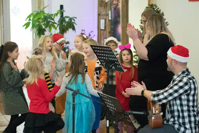 atvyko su žaidimais, dovanomis ir sveikinimais šventų Kalėdų proga, vaikai
