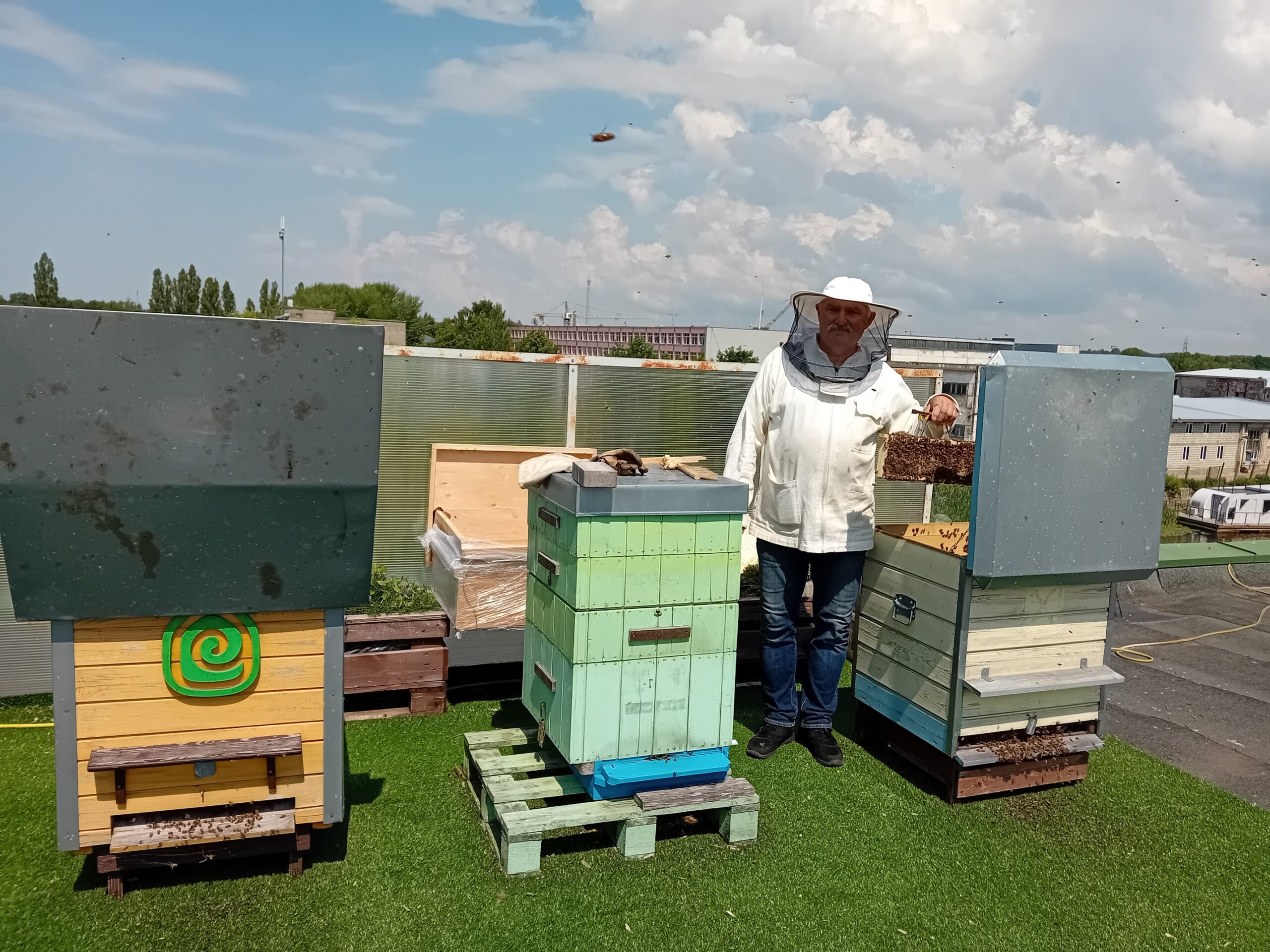 Beveik keturis dešimtmečius SBA grupės įmonėje „Klaipėdos baldai“ dirbęs Emilijus Valiulis buvo vienas iš iniciatorių, kad ant gamyklos stogų atsirastų bičių aviliai. Šiandien Emilijus jau išėjęs į pensiją, tačiau gamyklai teikia paslaugą – ir toliau prižiūri bičių šeimas. Ir nors šiuo metu bitės žiemoja, avilius įmonėje jis patikrina bent kartą ar du per mėnesį.