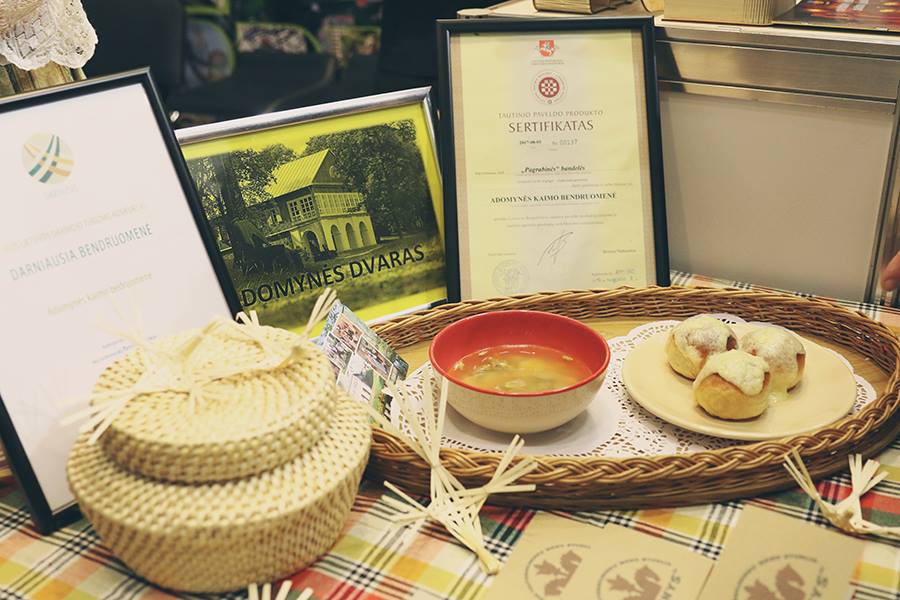 Adomyniečių gaminamos „Pagrabinės“ bandelės yra sertifikuotas Lietuvos kulinarinio paveldo produktas. Jos ypatingos tuo, kad yra valgomos karštos su padažu kaip antrasis patiekalas. Svečiai itin jas mėgsta, tik juos stebina šio skanėsto pavadinimas. Pasak bendruomenės atstovų, jos nebūtų autentiškos, jei būtų vadinamos kitaip. Šių bandelių receptą Vita Raugalienė sužinojo iš savo anytos Kazės Raugalienės. Vitos mama Marė Meiduvienė irgi jas kepdavo. Manoma, kad jos būdavo kepamos jau prieš 150 metų. Kad tokios bandelės būtų ruošiamos kitose Lietuvos vietovėse, adomyniečiams girdėti neteko.