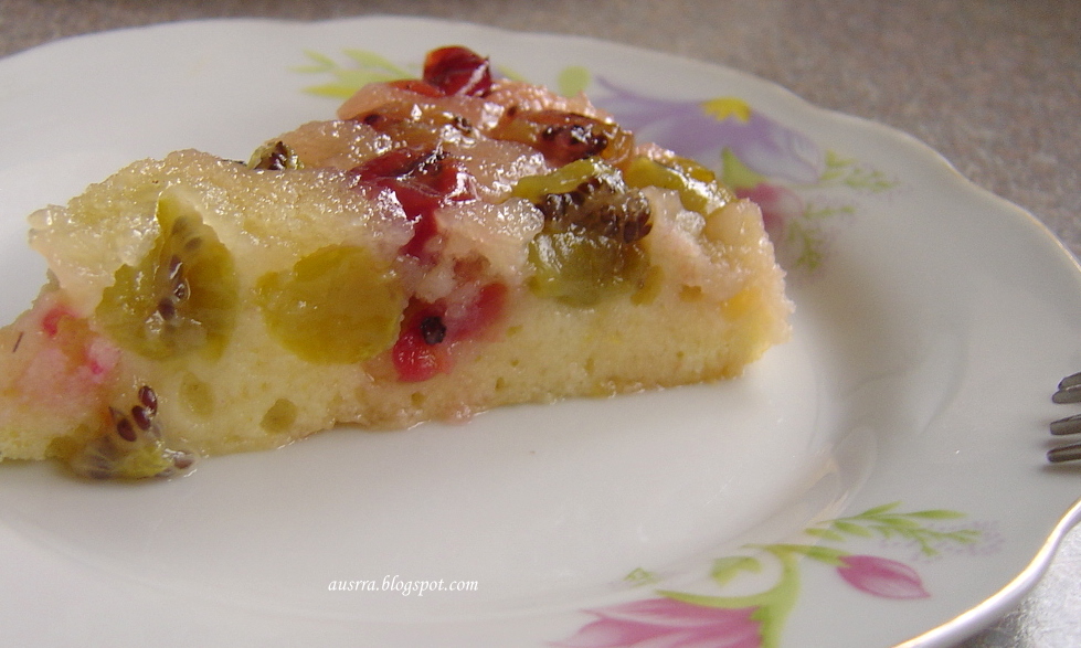 Pyragą būtų galima pavadinti apverstu, mat ant dugno – tirpinto cukraus sluoksnis, labai tinkantis rūgščioms uogoms, virš uogų – plonas biskvitas. Tačiau galima jo ir neversti, ypač jei kepame išardomojoje kepimo formoje.