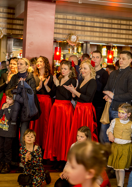 Folkloru mugės dalyvius linksmino net du tautiniai kolektyvai: ansamblis „Dobilas“ iš Dublino ir lietuvių liaudies šokių kolektyvas „Spiečius“ iš Šiaurės Airijos. Elonos studija atsivežė šokėjus nuo mažiausių iki didžiausių. Puikių dainų dovanojo vaikų choras ,,Baltieji perliukai“.