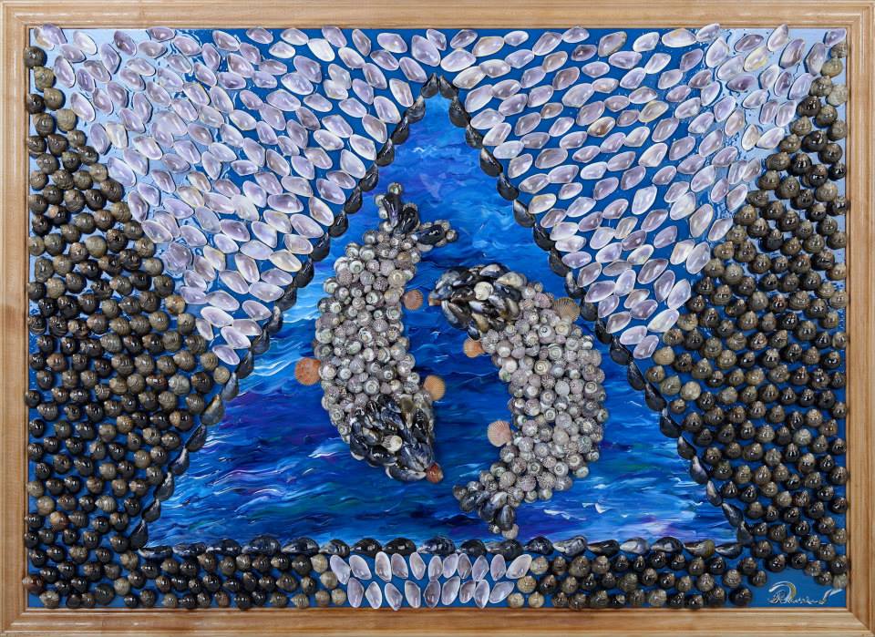 Nuolat tobulinu techniką ir eksperimentuoju. Kūriniai – mano patirties rezultatas. Pirmiausia piešiu paveikslą, o tada išdėlioju kriaukles ir vandenyno augmeniją.