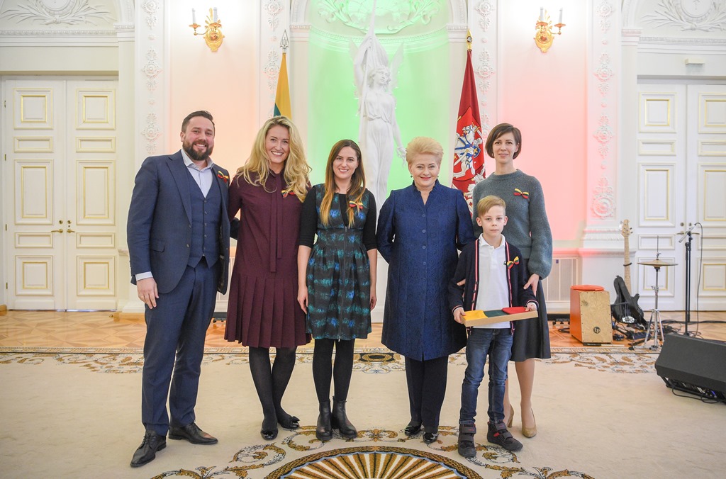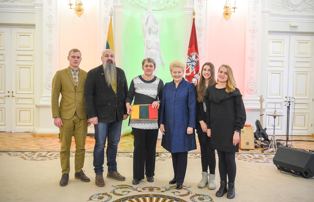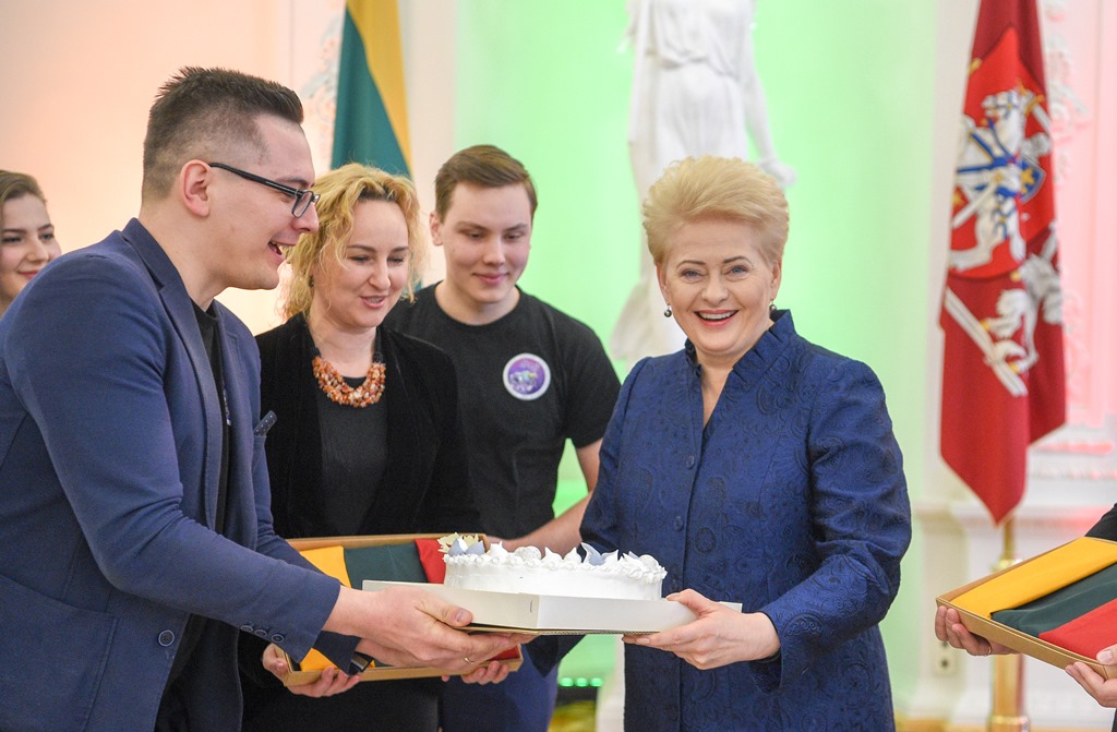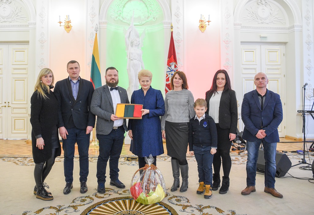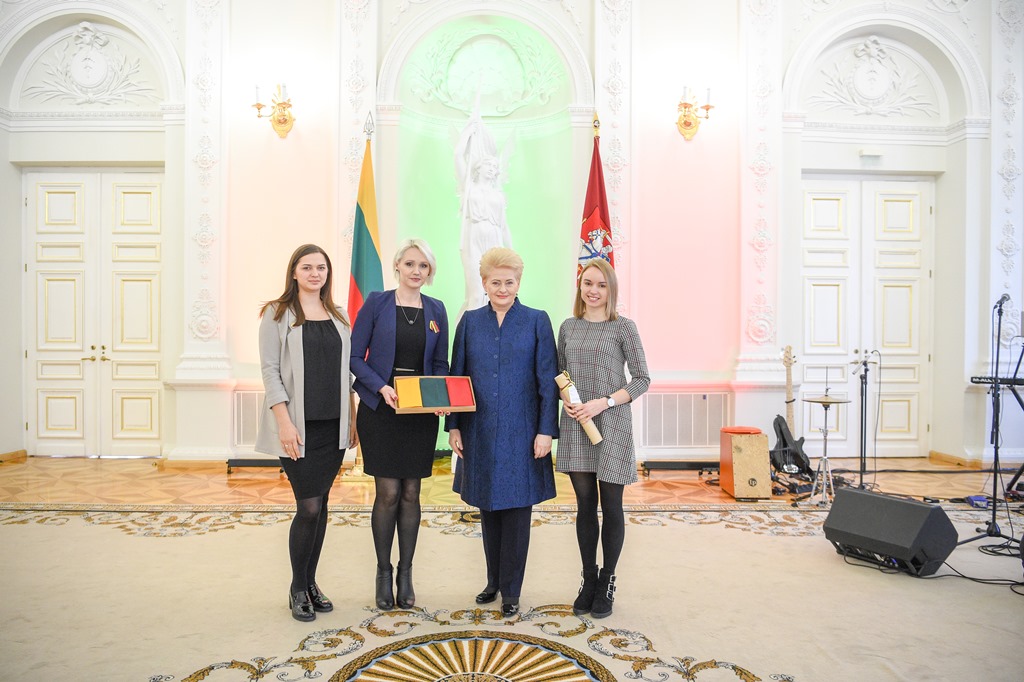 Penktadienį Prezidentė Dalia Grybauskaitė pasveikino ir už originalumą, pilietiškumą, gebėjimą sutelkti ir meilės Lietuvai puoselėjimą trispalvėmis vėliavomis apdovanojo sumaniausius akcijos „Vasario 16-ąją švęsk linksmai ir išradingai“ idėjų autorius.