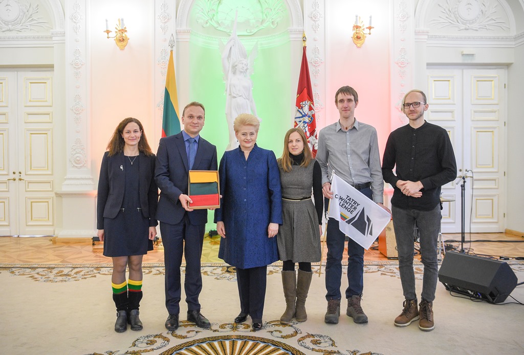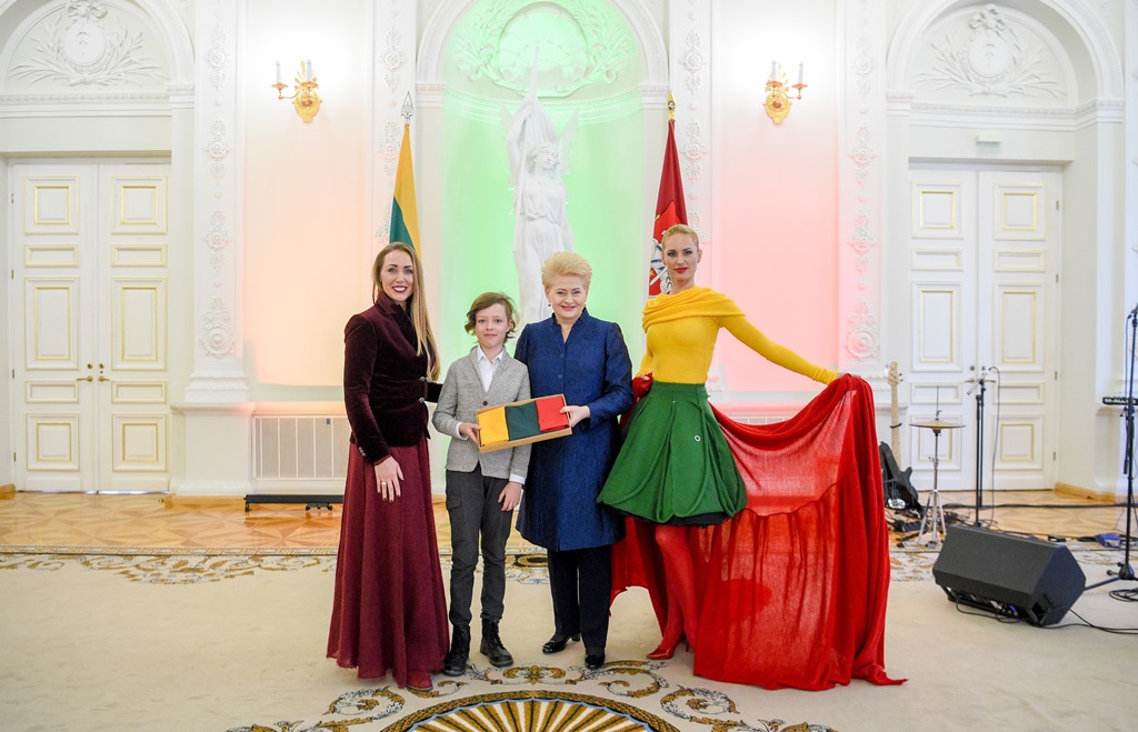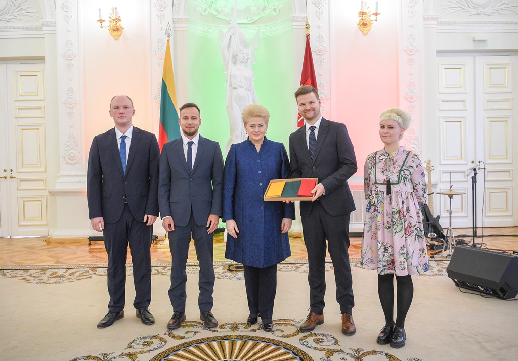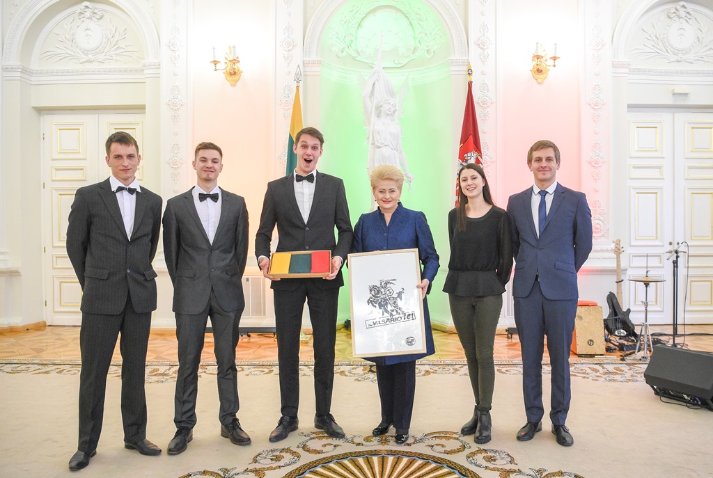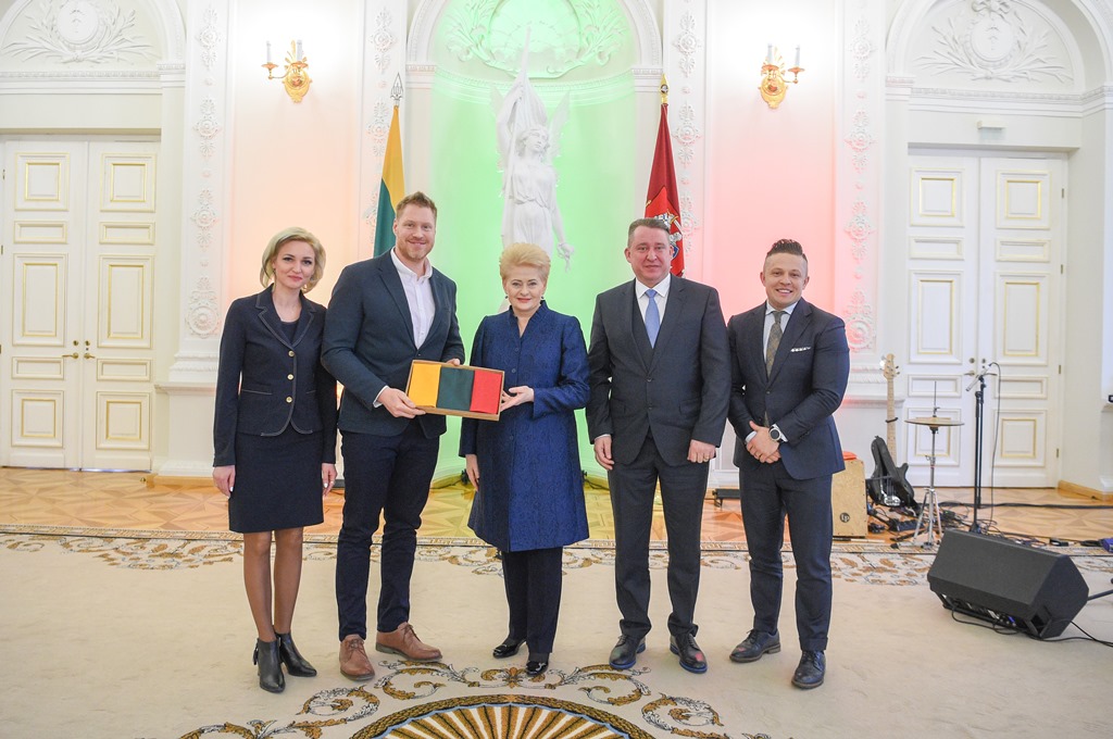 Penktadienį Prezidentė Dalia Grybauskaitė pasveikino ir už originalumą, pilietiškumą, gebėjimą sutelkti ir meilės Lietuvai puoselėjimą trispalvėmis vėliavomis apdovanojo sumaniausius akcijos „Vasario 16-ąją švęsk linksmai ir išradingai“ idėjų autorius.