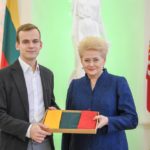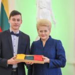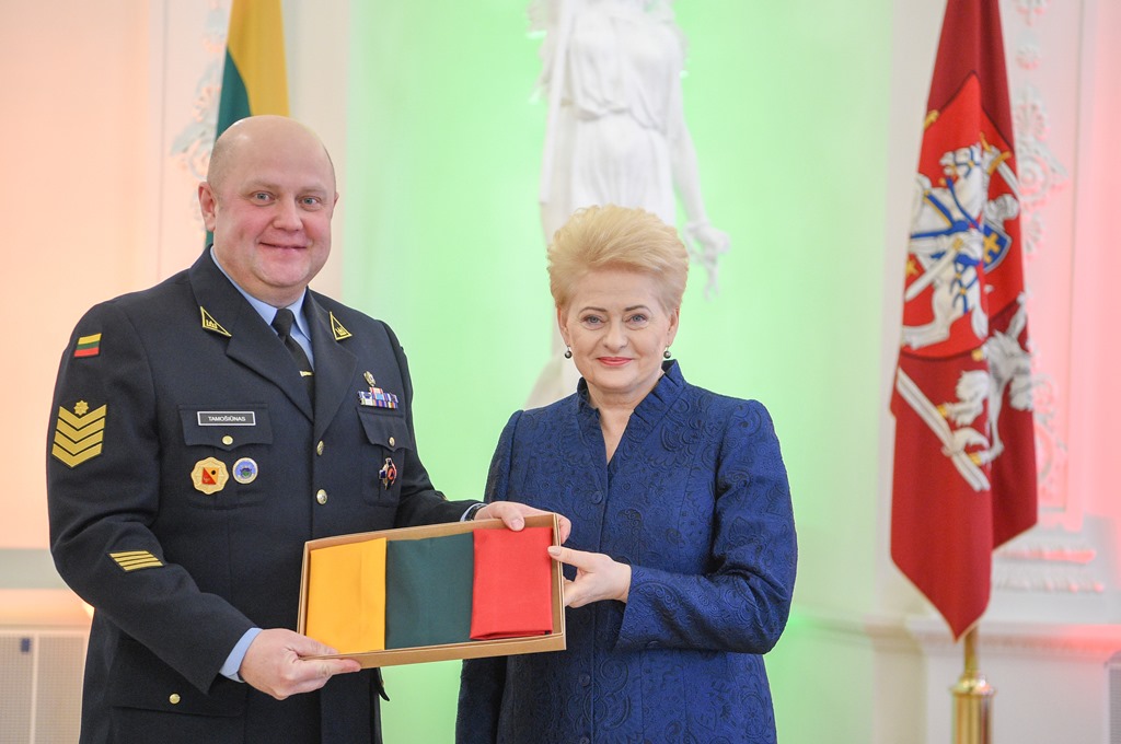 Iš Prezidentės rankų vėliava įteikta Vidui Bubinui, pačiame Lietuvos ir Lenkijos pasienyje, Kalvarijos savivaldybės Liubavo seniūnijos kaime, padovanojusiam gyventojams 100 trispalvių ir kotų joms iškelti.