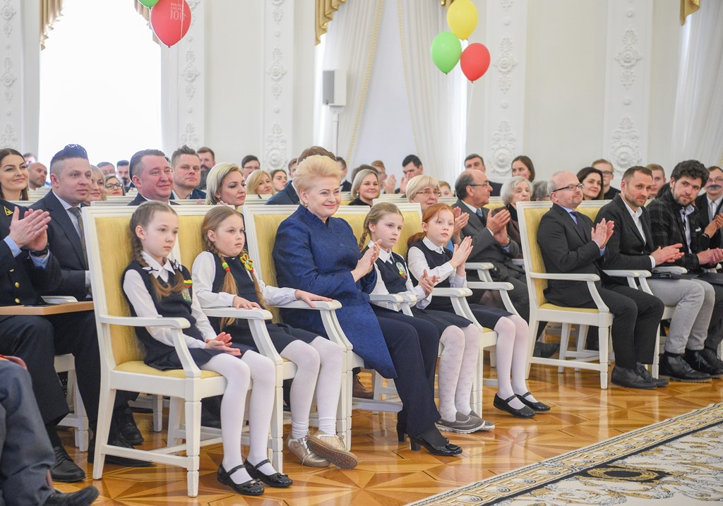 „Šių metų Vasario 16-ąją ilgai prisiminsime kaip šimtmečio įkvėptą pakilimą ir džiaugsmą. Savo išradingomis idėjomis, entuziazmu Jūs daug prisidėjote, kad valstybės jubiliejus taptų puikia, nuoširdžia ir spalvinga švente“, – sakė Prezidentė.