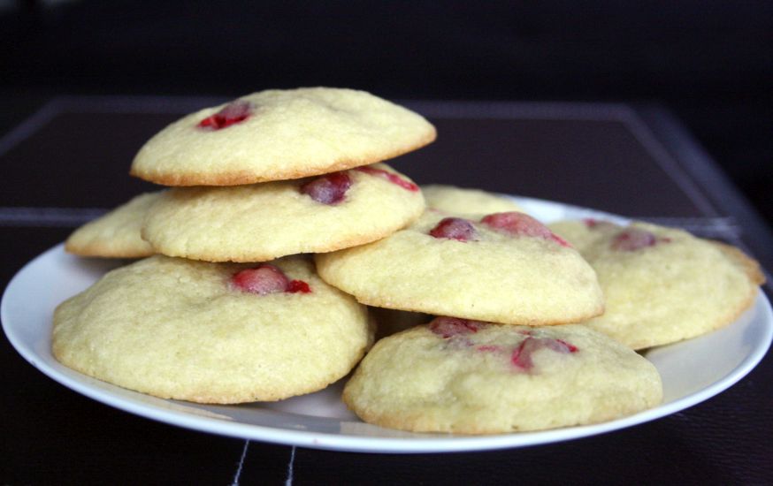 Dubenyje išplakite kiaušinį, sviestą, vanilės ekstraktą ir apelsino žievelę. Sudėkite miltus, kepimo sodą, druską, cukrų, supilkite apelsinų sultis. Viską išmaišykite iki vientisos masės. Įmaišykite spanguoles ir baltąjį šokoladą. Šaukštu imkite tešlos, formuokite kamuoliukus ir išdėliokite ant kepimo popieriaus palikdami tarpus. Palikite kepimo skardą šaldytuve mažiausiai 30 minučių. Orkaitę įkaitinkite iki 180 °C temperatūros. Kepkite, kol šiek tiek paruduos sausainių kraštai, apie 10 min. Išėmę iš orkaitės palikite sausainius apie 5 min. skardoje, tada pabaikite vėsinti ant grotelių.