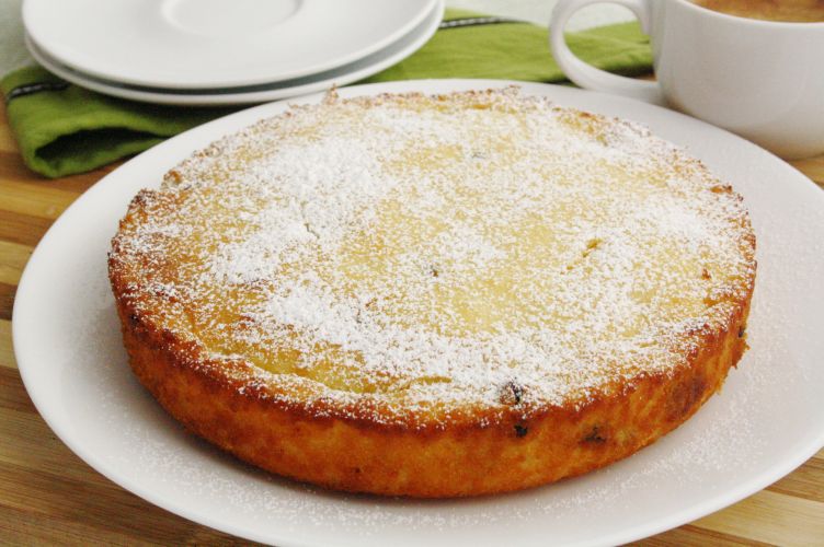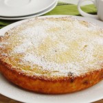 Supilame tešlą į kepimo formą ir kepame apie 35 minutes (aš kepiau 45 minutes). Pyragas iškepęs, jeigu į jo centrą įkištas medinis iešmelis neaplimpa tešla.