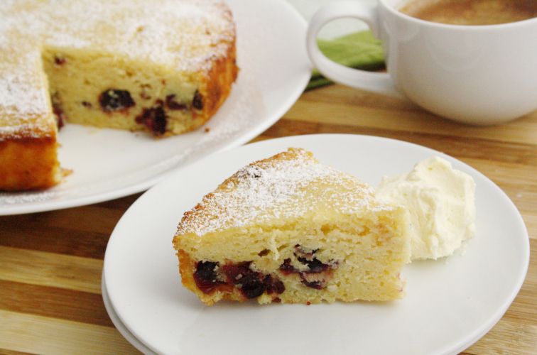Dideliame dubenyje sumaišome miltus, maltus migdolus, apelsino žievelę ir spanguoles. Kitame dubenyje suplakame cukrų, jogurtą, aliejų, sultis ir kiaušinius.
