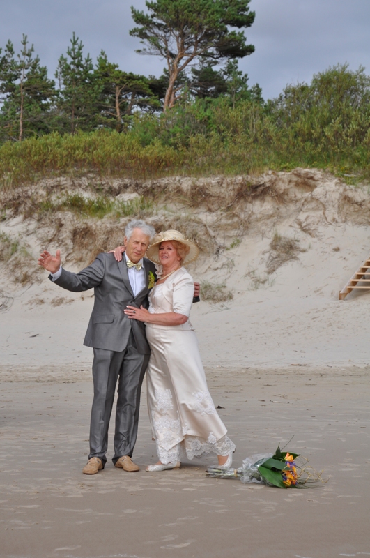 Angelės Onos Jarmalienės ir Antano Algirdo Jarmalos auksinių vestuvių šventė buvo nuostabi, nes vyko ant jūros kranto: juk jūra – tai meilė, ilgesys, tai antrieji gražios poros namai. Angelė ir Antanas Algirdas Jarmalai – projektavimo firmos „Gabija“ savininkai, – sulaukę gražaus amžiaus, antraisiais namais pasirinko Palangą ir įsikūrė Plaušės kvartale, prie Ašarėlės upės tvenkinių. Čia ir paminėjo 50-ąsias savo vestuvių metines.