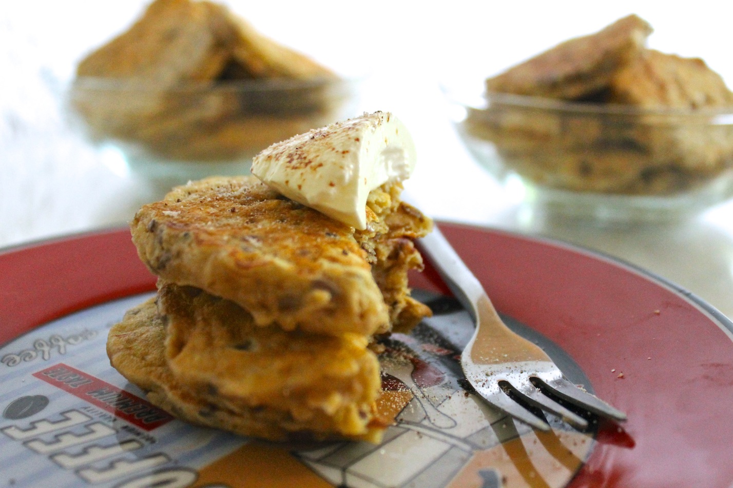 Šie blyneliai puikiai tinka su saldinta obuolių tyre arba obuolių džemu. Skanaus!