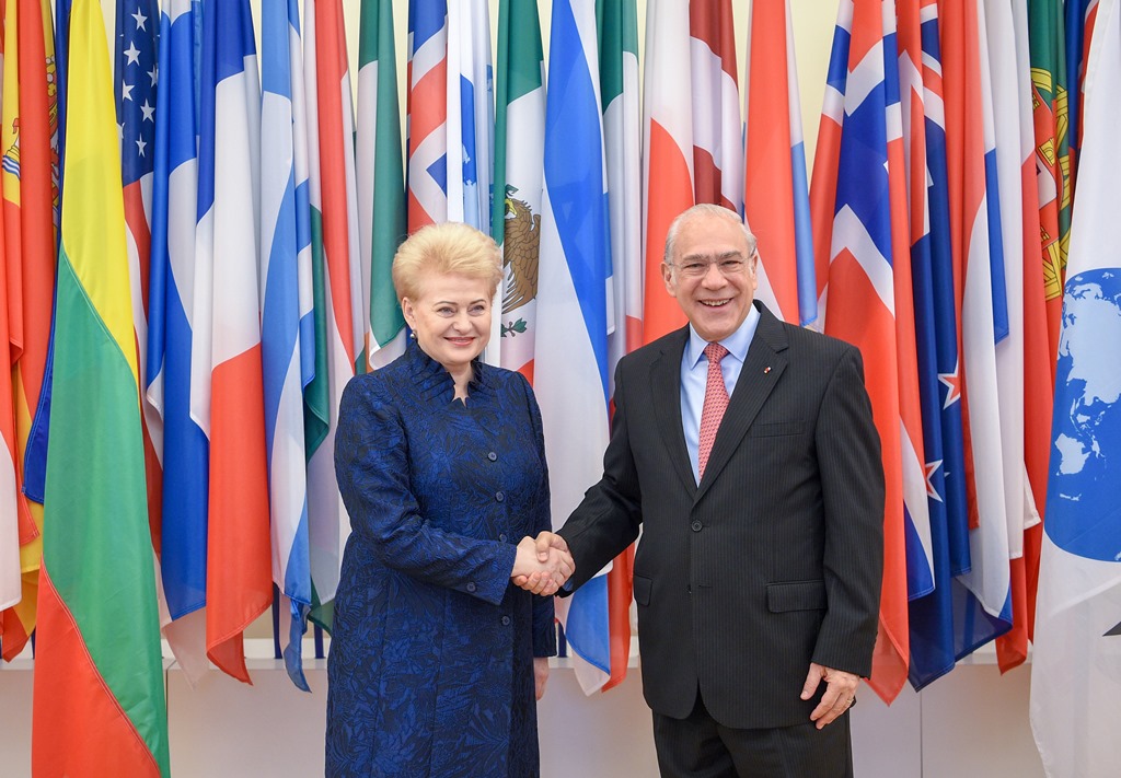 Pirmadienį, balandžio 9 d., Prezidentė Dalia Grybauskaitė Paryžiuje susitiko su Ekonominio bendradarbiavimo ir plėtros organizacijos (EBPO) generaliniu sekretoriumi Angeliu Gurria ir dalyvavo EBPO Tarybos sesijoje. Formaliai buvo baigtos derybos dėl mūsų šalies narystės šioje organizacijoje.