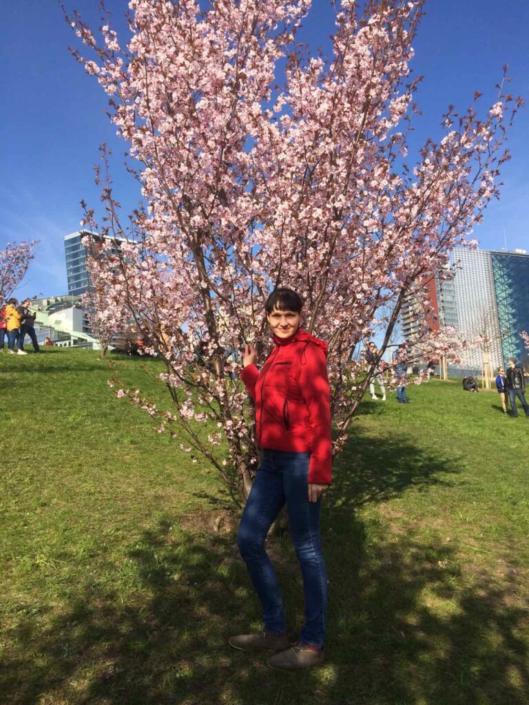 Laukdama leidimo gyventi Lietuvoje, mokėsi. „Prieš metus atvažiavau į Lietuvą. Galiu pasakyti, kad įsimylėjau lietuvių kalbą! O kai tau patinka, tada ir mokytis lengviau. Atvažiavusi laukiau leidimo gyventi. Tuo metu negali dirbti, todėl kasdien, kol vyras būdavo darbe, žiūrėdavau lietuvišką televiziją. Iš pradžių nieko nesuprasdavau, tačiau su laiku darėsi vis lengviau. Norėdama dirbti turėjau išsilaikyti lietuvių kalbos egzaminą. Jį sudaro trys dalys: rašymo, klausymo ir kalbėjimo. Man buvo baisu kalbėti, nes aš supratau daugiau, nei galėjau pasakyti lietuviškai.“