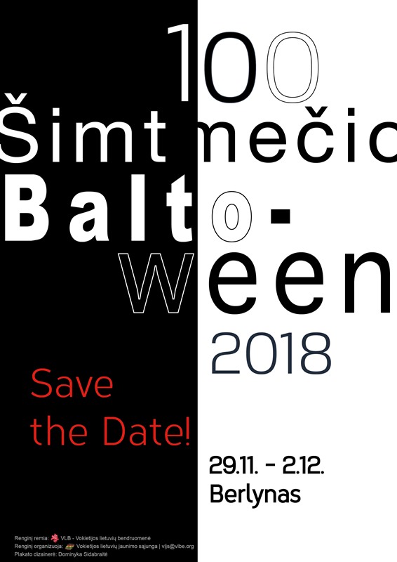 („Baltoweenas“ + VLJS Kalėdos) Berlyne – puiki alternatyva. O ir erdvė, kurioje jį švęsime, neeilinė – lietuviams priklausantis klubas „Panke“ Weddingo rajono lofte. Net ir laužą prižadame, jei oro sąlygos ir temperatūra leis! Renginio tema – šiais metais švenčiamas visų Baltijos valstybių atkūrimo šimtmetis. Renginį pradėsime diskusija „100 metų Baltijos šalims: brolystė, draugystė ar konkurencija?“ Lietuvos ambasadoje lapkričio 29 d., ketvirtadienį. Penktadienį vakare pasitiksime ne berlyniečius renginio dalyvius ir pažindinsimės jau „Pankėje“. Šeštadienį, kaip visada, visą dieną vyks dirbtuvės šimtmečio tema, o vakare – kaukių balius ir koncertas. Sekmadienį dar susitiksime pusryčių, aptarsime renginį ir keliausime namo. Prisijunk prie šimtmečio „Baltoweeno“ ir TU!