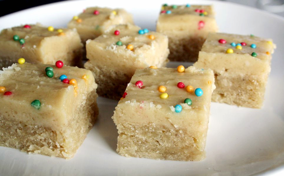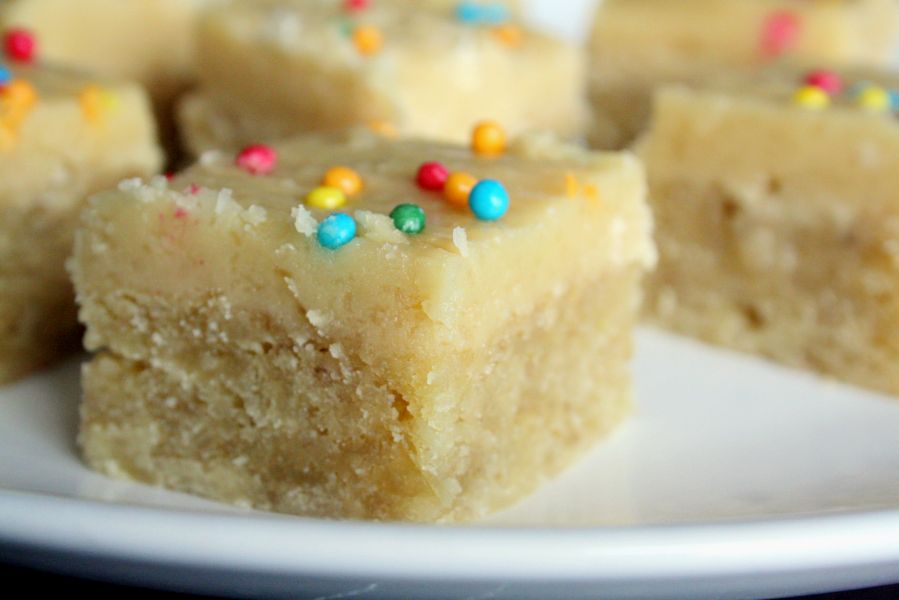 Paruošiame glajų. Vidutiniame puode išlydome sviestą, suberiame rudąjį cukrų ir supilame pieną, išmaišome ir palaukiame, kol viskas užvirs. Nuimame nuo ugnies, leidžiame pravėsti 5 minutes, tada įmaišome miltelinį cukrų. Gerai išmaišome iki vientisos masės, paskleidžiame ant atvėsinto pyrago ir leidžiame sustingti.