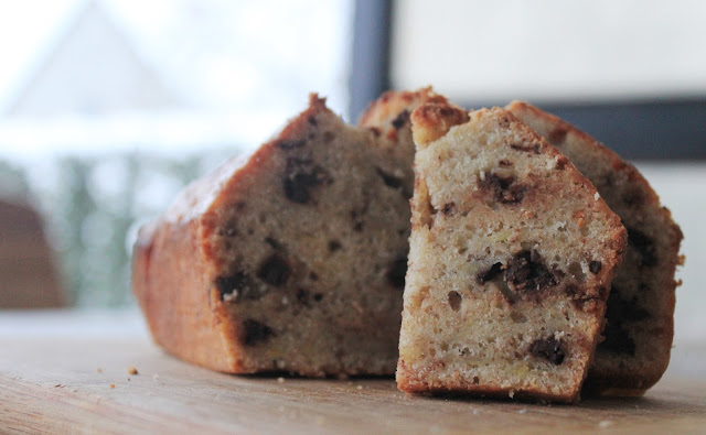 Dubenyje ištriname cukrų su kambario temperatūros sviestu, po vieną įmušame kiaušinius, dedame šakute trintus bananus. Miltus sumaišome su kepimo milteliais, druska ir suberiame į kiaušinių masę. Į gerai išmaišytą tešlą beriame ir įmaišome kapotą šokoladą.