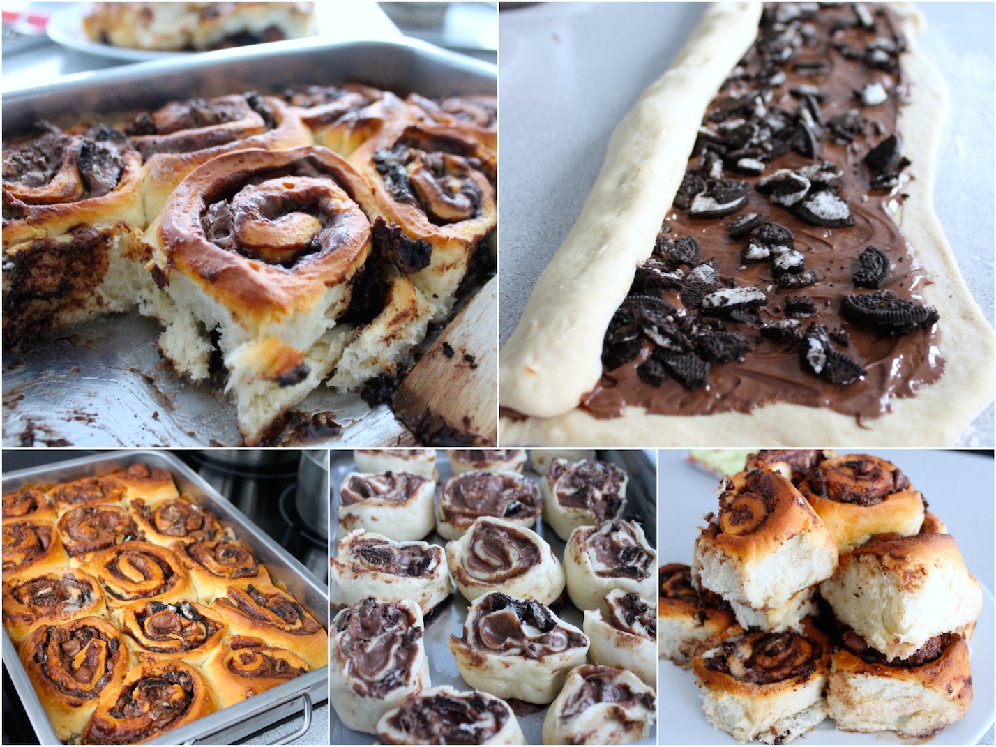 Iš pradžių norėjau išsikepti mielinių bandelių su „Nutella“. Tačiau, parduotuvėje einant pro sausainių skyrių, į galvą šovė mintis, kad būtų dar skaniau, jei į vidų įdėčiau trupintų „Oreo“ sausainių. Turbūt daug kas sakytų, kam kepti jau ir taip iškeptus sausainius, tačiau aš pasiklioviau nuojauta – gaminau taip, kaip man patinka. Esu tikra, kad visi skeptikai, paragavę šių burnoje tirpstančių bandelių, pirštelius apsilaižytų.
