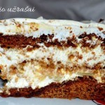 Į torto formą dėkite vieno biskvito sluoksnį, užtepkite kremo ir taip sluoksniuokite, kol sutepsite visą tortą.