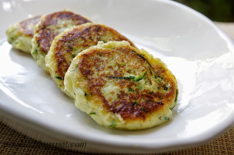 Burokine tarka sutarkuokite cukiniją ir rankomis nuspauskite skysčio perteklių. Į bulvių košę dėkite cukinijas, įmuškite kiaušinį, suberkite miltus, pagardinkite druska ir juodaisiais pipirais ir viską gerai išmaišykite. Drėgnomis rankomis formuokite blynelius ir kepkite keptuvėje įkaitintame aliejuje iš abiejų pusių. Patiekite su mėgstamu padažu.