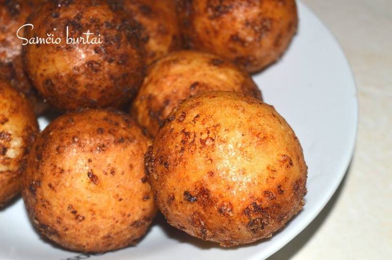 Aš dėjau daugiau miltų ir rankomis (pašlapintomis vandenyje) formavau kamuoliukus – tada spurgos išeina gražesnės nei kabinant su šaukštu.