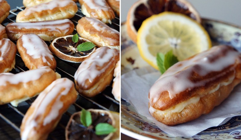 Dabar tešlą krėsti į konditerinį maišelį ir ant kepimo popieriumi išklotos skardos spausti norimo dydžio pailgos formos pyragėlius. Dėti į orkaitę ir kepti 12–15 minučių, kol gražiai išsipūs ir paruduos (patariu kepimo laiką atidžiai stebėti, nes man jie iškepa beveik visada skirtingu laiku). Jei reikia, į kepimo pabaigą kaitrą sumažinti iki 190 °C ir būtinai kepti tol, kol stipriai paruduos, nes tada jie pasidaro tvirtesni ir atidarius orkaitę nesubliūkšta. Iškepusius atvėsinti.