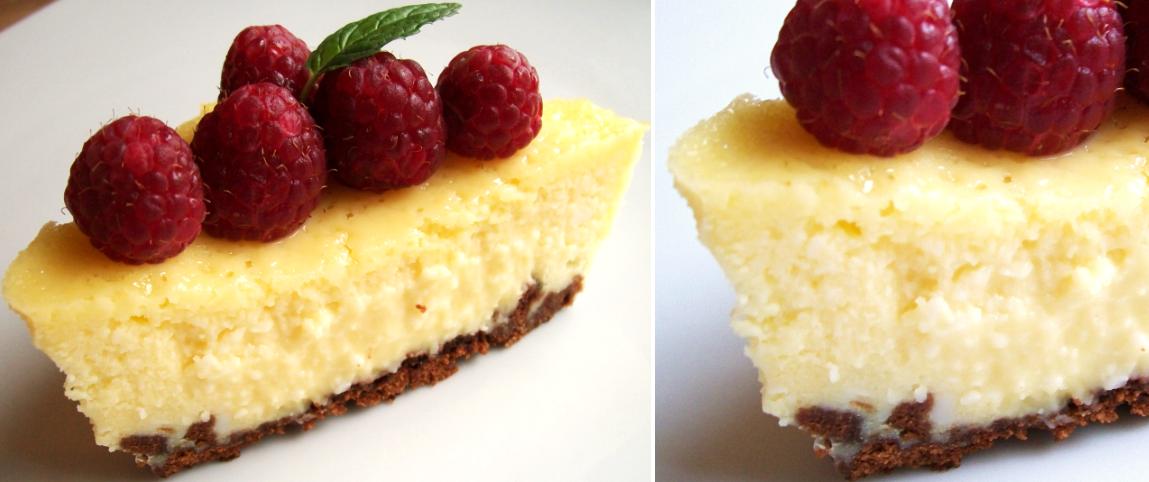 Gaminame kremą. Visus sūrius, cukrų, kiaušinius, likerį gerai išplakame (geriau tai daryti elektriniu plaktuvu), supilame kremą ant anksčiau paruošto pyrago pagrindo ir pašauname pyragą į iki 180 °C temperatūros įkaitintą orkaitę. Kepame 50–60 min. Iškepusį pyragą dedame į šaldytuvą, kad sustingtų (geriausia palaikyti jame per naktį). Puoškite šviežiais vaisiais, citrinos žievele ar citrinos griežinėliais. Skanaus!