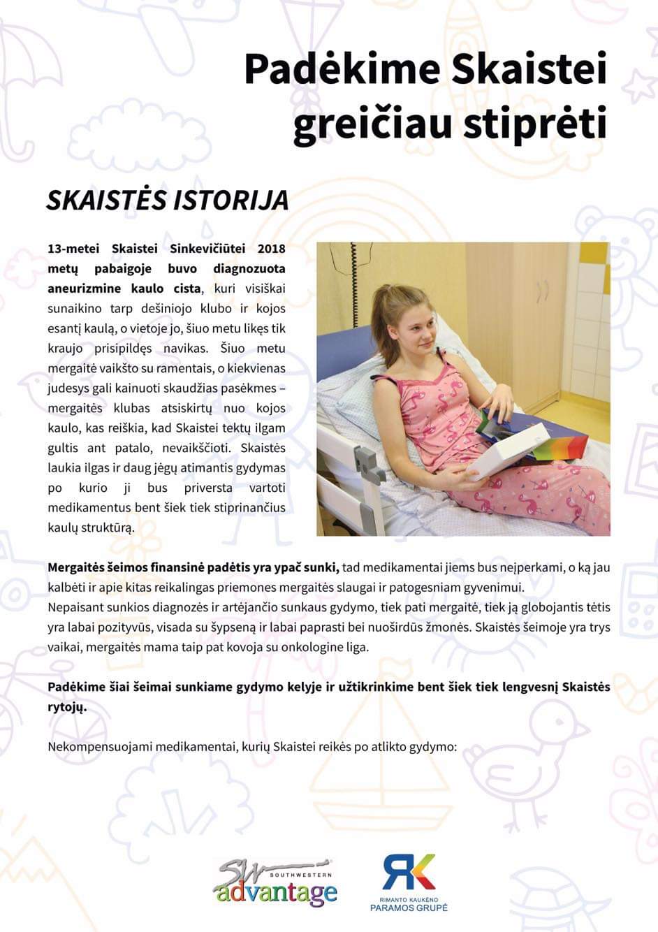 Mokėjimo paskirtis: „Parama Skaistei S.“