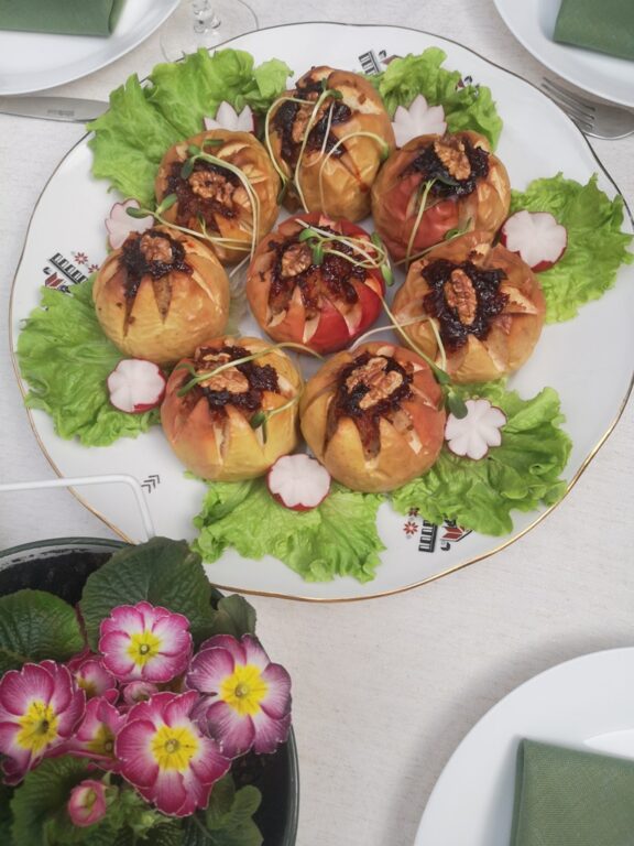 Kadangi artėja Velykos, laidoje tautinio paveldo puoselėtoja pasidalins idėja šventiniam stalui – pagamins keptų obuolių, įdarytų paukštiena.
