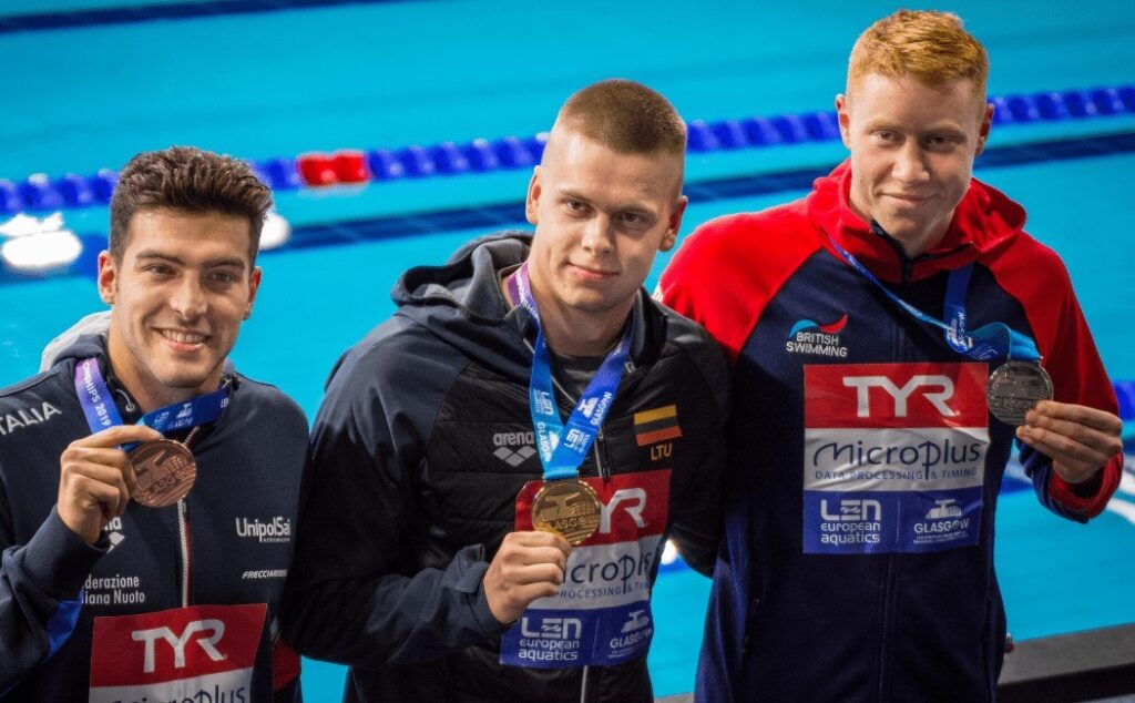 Pirmąją šių metų čempionato dieną vyrų 400 m plaukimo laisvuoju stiliumi finale lietuvis finišavo per 3 min. 33,20 sek., laimėjo auksą ir pagerino 10 metų gyvavusį Europos čempionatų rekordą. Lietuvis lyderiavo nuo pirmųjų metrų ir stabiliai vis didino savo persvarą. Artimiausius persekiotojus aplenkė beveik 5 sek.