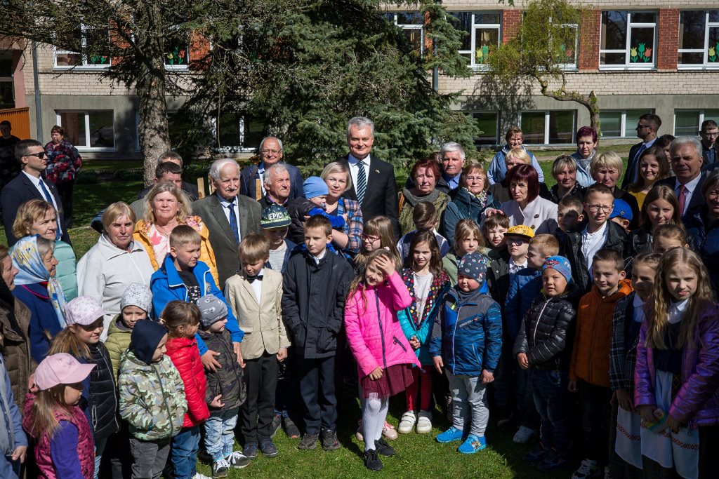 Lankydamasis Utenos „Vyturių“ progimnazijoje Prezidentas dėkojo mokytojų bendruomenei už aktyvumą, inovatyvumą ir pastangas kuriant ukrainiečių moksleivių integracijos sistemą.