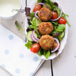 Tada juos suberkite į maisto smulkintuvą, įmuškite kiaušinį, supilkite citrinos sultis, sudėkite šiek tiek pasmulkintus svogūną, česnaką ir petražoles, suberkite grūstus arba maltus prieskonius (kuminą, kalendrą, aitriąsias paprikas). Trinkite, kol ingredientai susimaišys. Nesistenkite visko sutrinti į košelę, svarbu, kad neliktų didelių gabaliukų (ypač svogūno ar česnako).