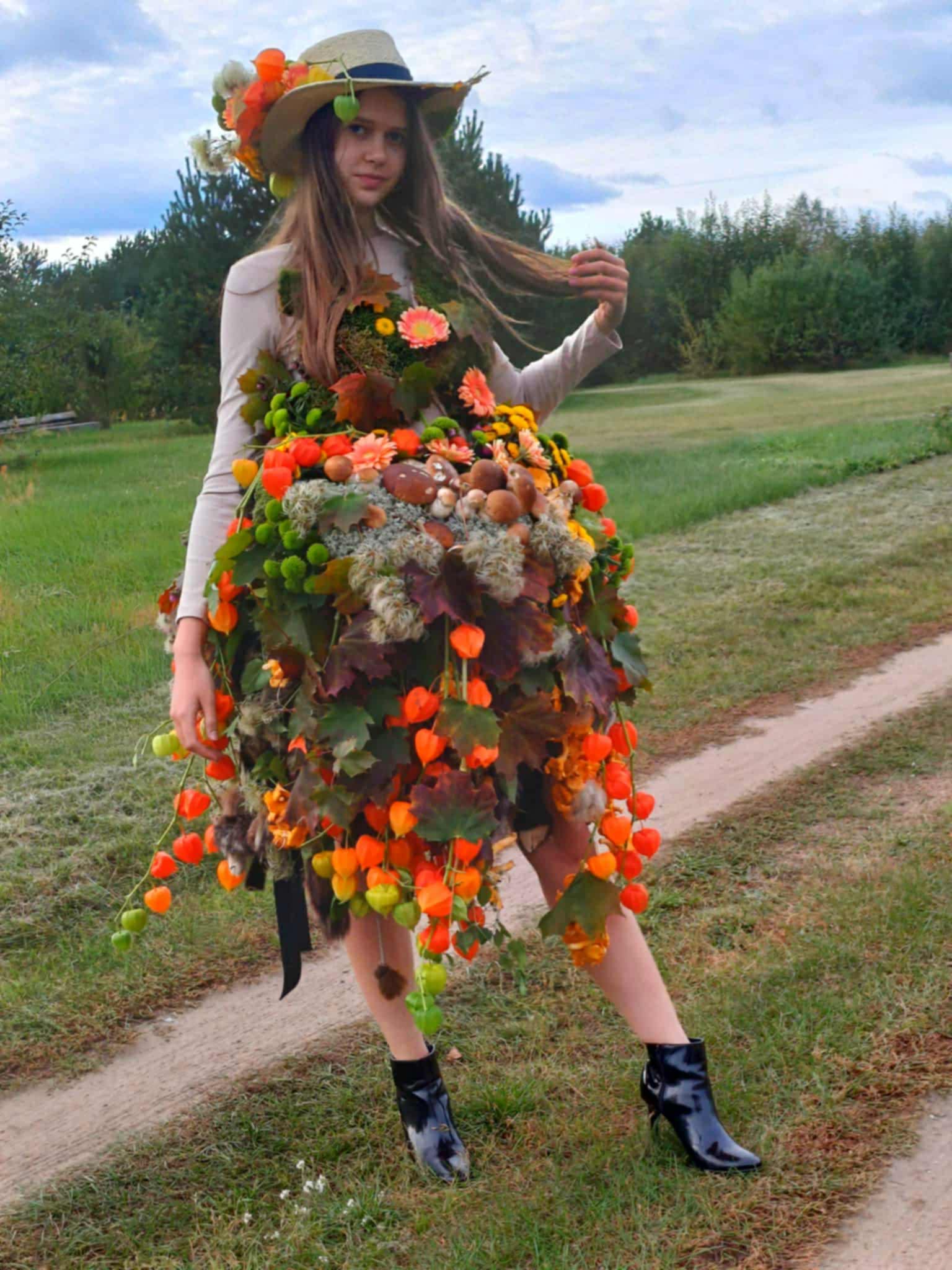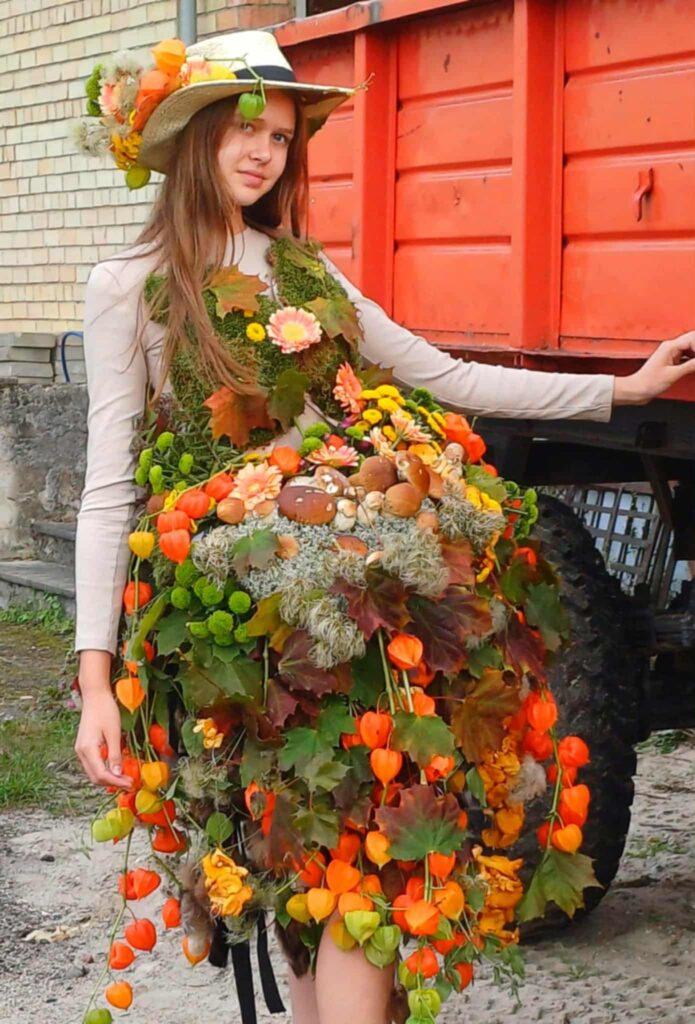 palaidinė su sijonu. Dar vienas rekordas – suknelė iš dvidešimties tūkstančių moliūgų