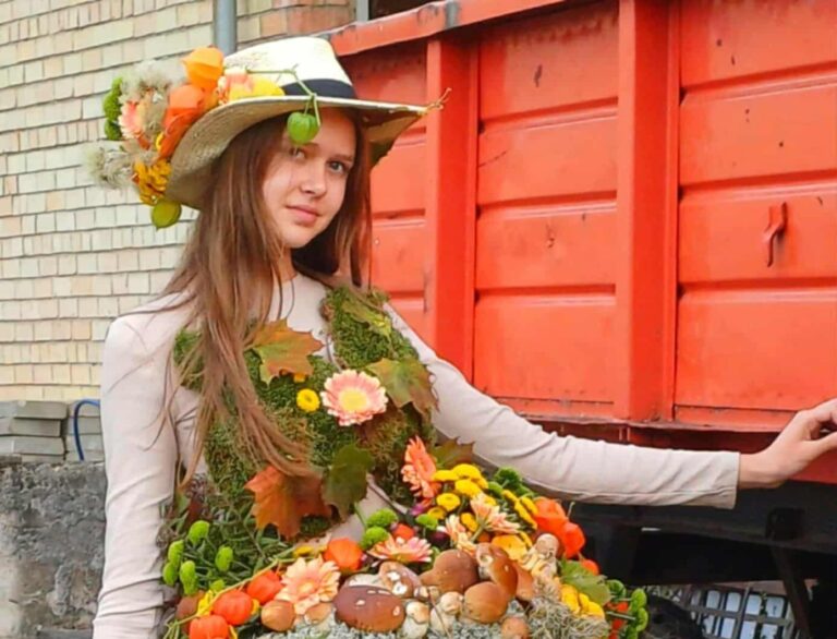 padovanojo įsimintiną vakarą – pristatė suknelę iš miško gėrybių.