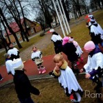 Smagiai visi „varlinėjo“ žaisdami žaidimus, estafetes ir komandomis, ir pavieniui. Prisidūkę, privarlinėję, visi skambant gandrų valsui ritmingai ir aukštai keldami kojas ilga vora žirgliojo aplink aikštę. Apsukus ratą laukė maloni staigmena: dailiai supakuoti meduoliukai. Juos dosniai dalijo Ramygalos kultūros centro direktorė L. Kubiliūnienė. Tai taip pat atgaivinta senovinė tradicija, mat šeimininkės Gandrinių dieną ruošdavo ypatingus pavakarius artojams, kepdavo įvairių grūdų bandeles. Tikėta, kad tada javai gerai dygs. Jas dovanodavo ir kaimynams ko nors gero palinkėdami arba pakabindavo sausainėlį ant tvoros kaip draugystės ženklą. Šventei pyragėlių pagal seną receptą prikepė Ramygalos malūno šeimininkė V. Plučienė.