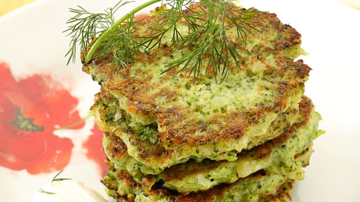 Gaminimo eiga: apvirkite brokolį pasūdytame vandenyje, atvėsus susmulkinkite. Sutarkuokite sūrį, išplakite kiaušinius ir įberkite druskos. Suberkite miltus, viską išmaišykite ir kepkite ant silpnos ugnies iš abiejų pusių. Patiekite su graikišku jogurtu.