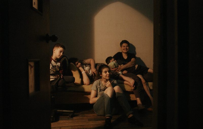 Ukrainiečių režisierė I. Tsilyk savo filme „Mėlyna kaip apelsinas žemė“ pasakoja Donbase, Krasnogorovkoje, gyvenančios šeimos istoriją. Tuo metu, kai aplink tvyro chaosas ir kiekviename žingsnyje juntamas ne vienus metus vykstantis karas, vieniša keturių vaikų mama Anna savo namuose vaikams kuria šviesos, saugumo ir kūrybos zoną. Aistra kinui, užvaldžiusi visus šeimos narius, įkvepia filmuoti, montuoti ir pristatyti bendrą jų visų kūrinį – filmą. Kinas kine ir varganoje karo nualintoje buityje išsiskleidęs kūrybos procesas atveria, kokią galią ir magiją katastrofos akivaizdoje turi menas. Mamai ir keturiems jos vaikams traumos transformacija į kūrybą yra vienintelis būdas išlikti žmonėmis.