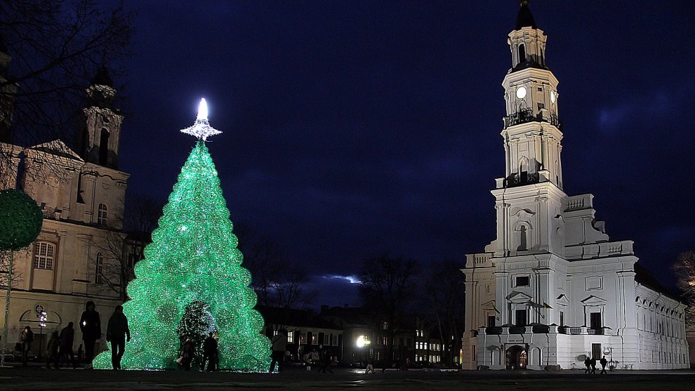 Kauno Rotušės aikštę puošusi iš plastikinių butelių pagaminta smaragdinė Kalėdų eglė net ir po ketverių metų kauniečiams primins ekologijos idėjas. 18 metrų aukščio skulptūrai panaudoti tūkstančiai plastikinių butelių virto spalvotais maišais, kuriuos dovanų gaus šį šeštadienį vyksiančios akcijos „Kaunas tvarkosi“ dalyviai.