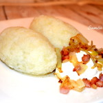 Imame bulvių masės, dedame įdaro ir formuojame cepelinus. Dedame į verdantį pasūdytą vandenį ir verdame 10 min.
