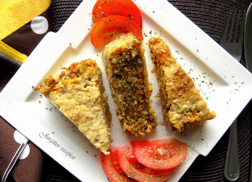 P. S. Ką tik iškepęs apkepas byra, bet šiek tiek atvėsęs išlaiko savo formą. Jei jo lieka kitai dienai, grikiai būna visiškai sukibę ir apkepas labai gerai pjaustomas. Puikiai tinka ir kaip garnyras, ir kaip atskiras patiekalas su daržovėmis ar salotomis.