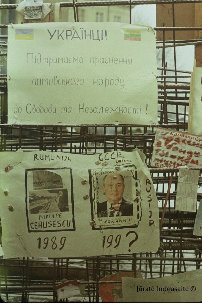 Vėliau, po kelių dienų, su kursiokais važiavome į Vilnių traukiniu – buvome labai sukrėsti įvykių ir norėjosi viską pamatyti savo akimis bei nufotografuoti. M. Mažvydo biblioteka buvo paversta Raudonojo kryžiaus būstine, o už Seimo rūmų, kitoje pusėje, į sieną atremti stovėjo medicininiai neštuvai. Tuo metu šalyje vyravusią atmosferą gerai atspindėjo užrašai lietuvių, anglų, ukrainiečių kalbomis prie tuometinės Aukščiausiosios Tarybos (dabartinio Seimo) rūmų. Gedimino prospekte buvo didžiulė barikada su užrašu „Laisvė“ ir „Lietuvos širdis“, žemiau angliškai buvo parašyta „Freedom for Baltic Countries“. Seimo rūmai buvo aptverti tvora iš geležinių strypų ir spygliuotos vielos, ant kurios žmonės buvo prikabinę piešinių ir karikatūrų su įvairiais užrašais, aplinkui mėtėsi garbės raštai su V. Lenino atvaizdais. Prie tos tvoros pastebėjome rudo popieriaus lakštą su užrašu „Gelbėjimo komitetui gelbėti“, o po juo sniege stovėjo žalias emaliuotas naktipuodis, į kurį žmonės buvo sumetę savo TSRS karinius bilietus. (Norėčiau priminti, kad Sausio 13-osios perversmui įgyvendinti praktikoje Lietuvos komunistų partija (TSKP) sudarė vadinamąjį „nacionalinio gelbėjimo komitetą“ ir tikėjosi, kad nepatenkinti blogėjančia ekonomine padėtimi Lietuvos gyventojai šį komitetą parems).