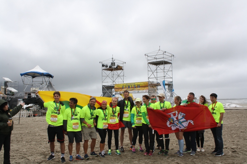 Kol Inga, Millana, Giedrė, Rima, Rolandas, Kantas, Rytis, Vilmantas, Romanas, Andrejus, taip pat jiems talkinantys „legionieriai“ Javier iš Meksikos bei totorė Svetlana iš Rusijos kovojo su nuovargiu ir „vijosi“ sau iš anksto nusistatytą 28 val. 30 minučių „Hood to Coast“ maratono estafetės laiko ribą, šeštadienio popietę Šiaurės Amerikos fizinio auklėjimo ir sporto sąjungos atstovai „Lituanicos“ laukė vėjuotame pajūryje su iš anksto paruoštais proginiais medaliais. Netrukus paplūdimyje pasirodė paskutinį etapą bėgusi Giedrė Babarskienė. Tarp ją pasitinkančiųjų išsiskyrė nuo pat ryto savanore Sisaide su savo draugu Deividu dirbusi dukra Agnė… Vadinasi, galime būti ramūs: Portlande trispalvė plevėsuos dar ne vieną dešimtmetį, o spalvingai išprotėjusiame „Rožių“ mieste bėgikų būryje tikrai sutiksime ir lietuvių.