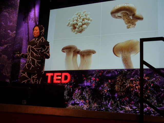 TED konferencijoje į sceną žengėte su specialiu laidojimo kostiumu, išvaizda primenančiu ant pūvančio medžio išsidėsčiusią grybieną. Papasakokite apie jį daugiau.