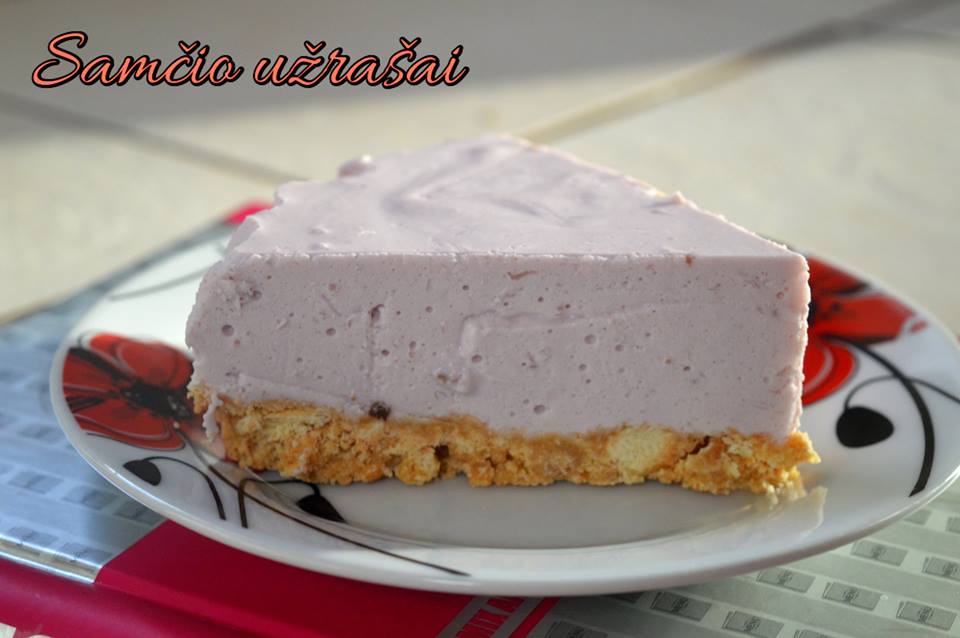 Kremą supilame ant sausainių pagrindo ir dedame į šaldytuvą 4 val.