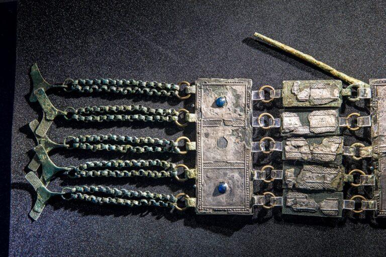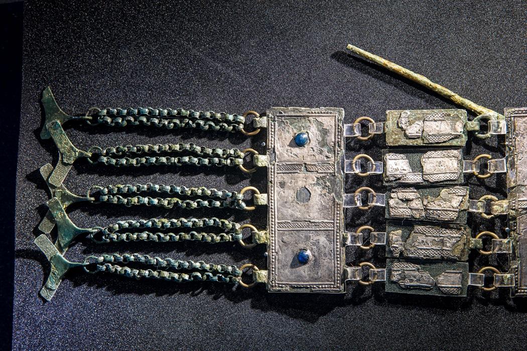 Vieno eksponato parodoje „Subtili mėlyna: ką matė stiklo akutės?“ pristatomas Palangos kapinyno moters kape rastas unikalus masyvus smeigtas kryžine galvute su prikabintų sudėtinių kabučių juosta. Smeigtas ir kabučiai yra žalvariniai, padengti plonomis ornamentuotomis sidabro plokštelėmis, galvutė papuošta kūgeliais, o kabučio plokštelės inkrustuotos mėlyno stiklo akutėmis. Puošybinės detalės iš mėlynos spalvos stiklo – karoliai, papuošalų akutės – tuo metu buvo ir prabanga, ir geidžiama madinga detalė.