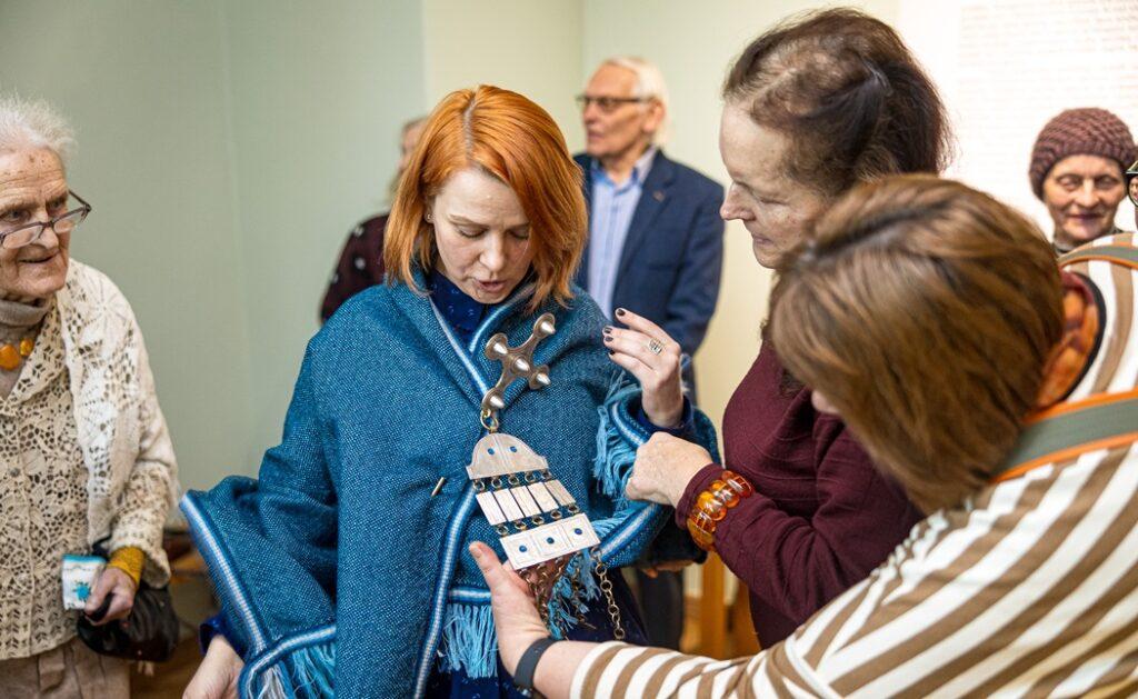 Palangos kapinyne archeologų atrastas eksponatas po 60 metų savo mėlyna šviesa vėl nušvito gimtajame krašte. Parodoje lankytojų laukia ir jo kopija, tokiomis pat mėlynomis akimis žiūrinti į originalą, ir muziejaus audėjų rankomis išausta kuršės skraistė, kuria galima apsigaubti. O susisegus skraistę smeigtu ir pajutus jo svorį, bus nesunku įsivaizduoti save IX amžiuje arba pagalvoti apie socialinę moters padėtį vadinamuoju mėlynuoju laikotarpiu.
