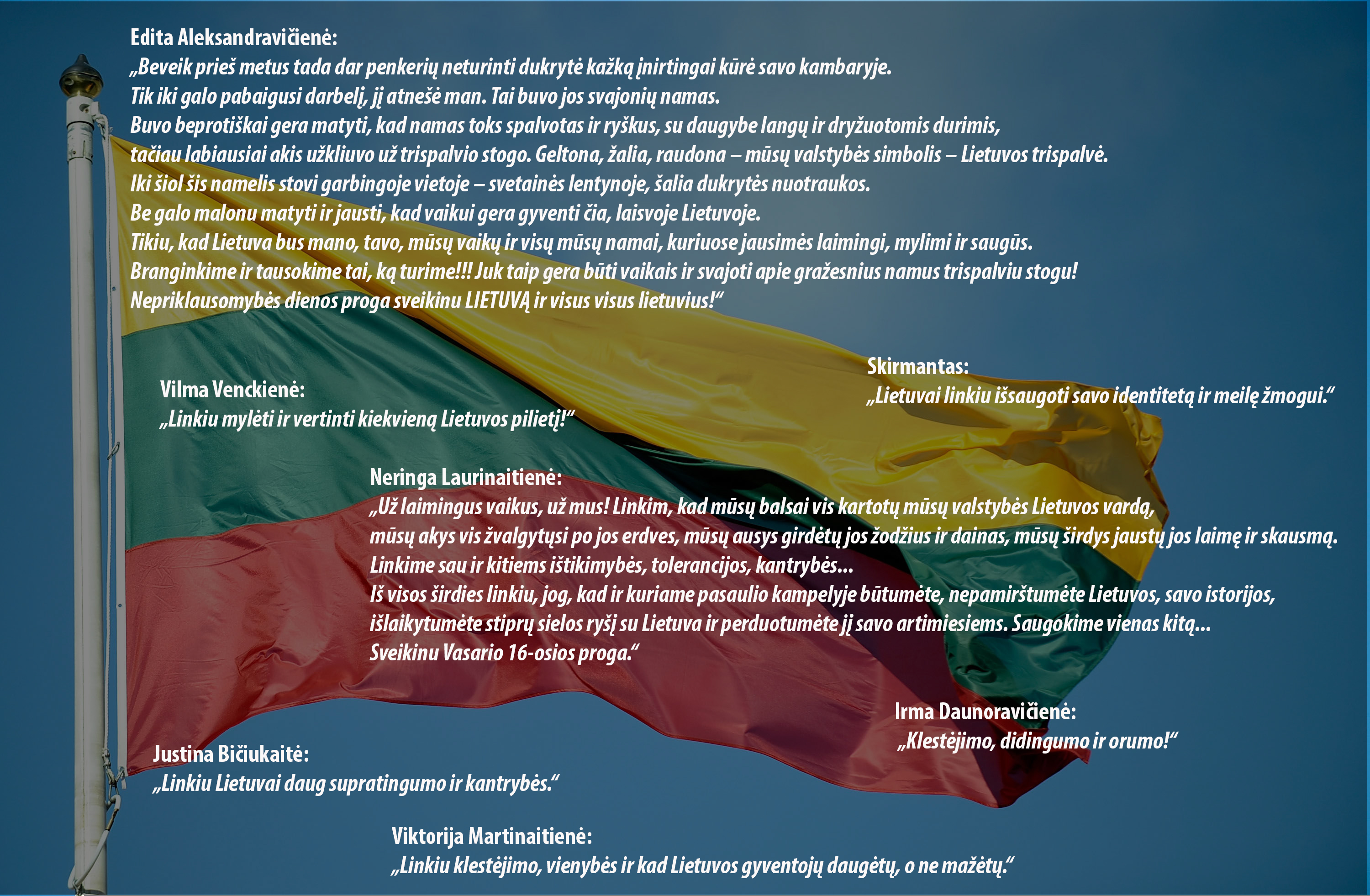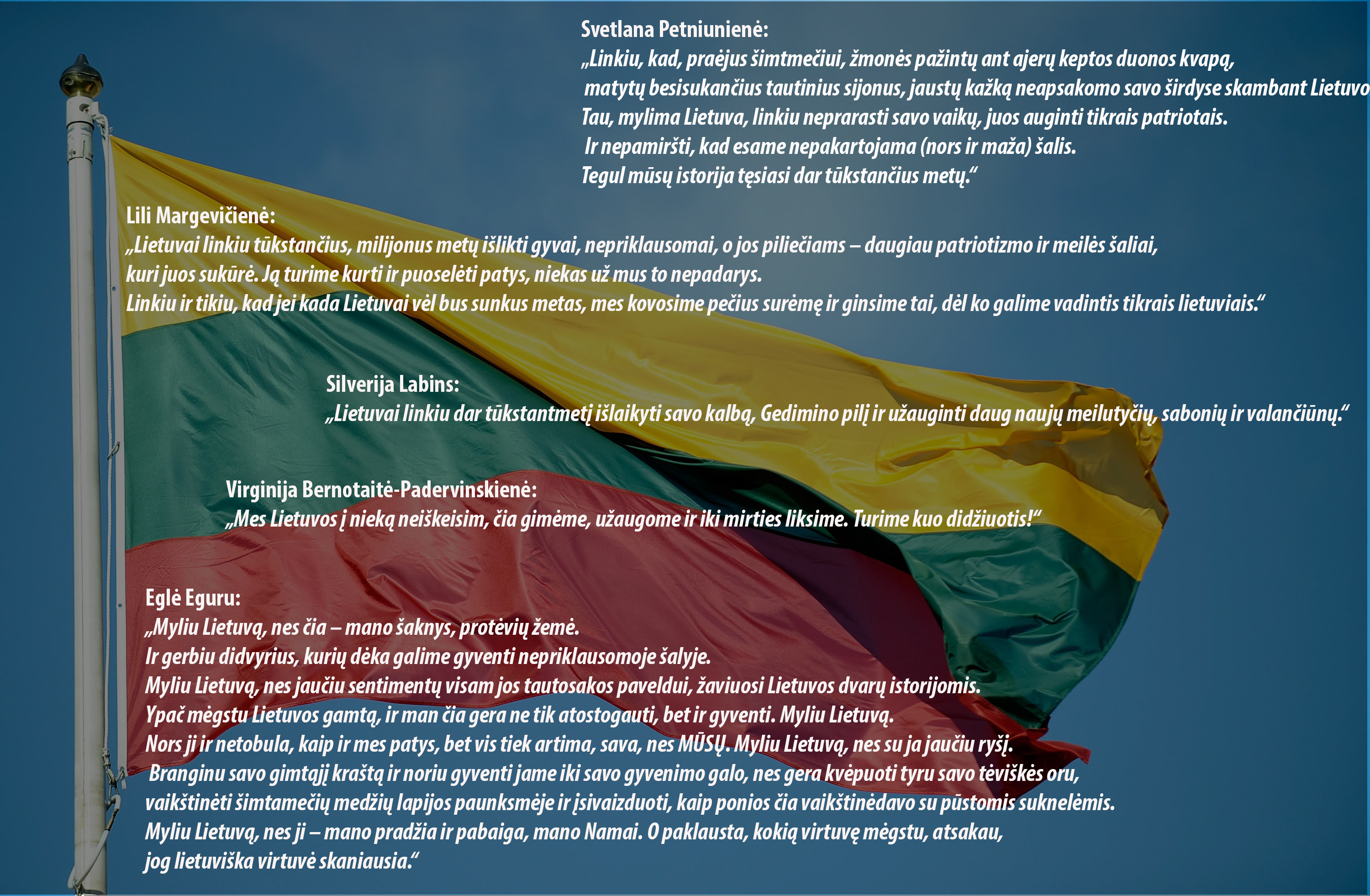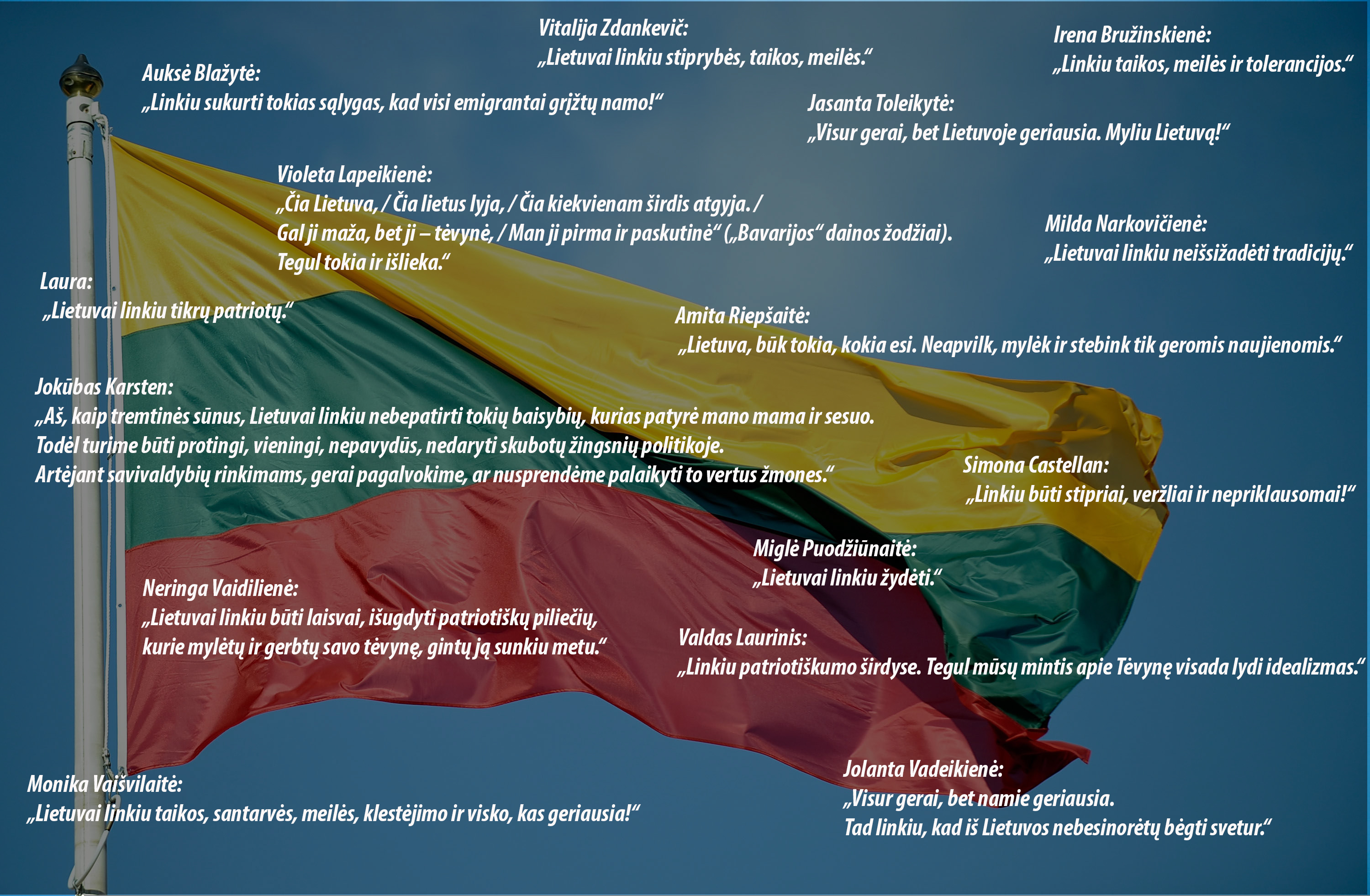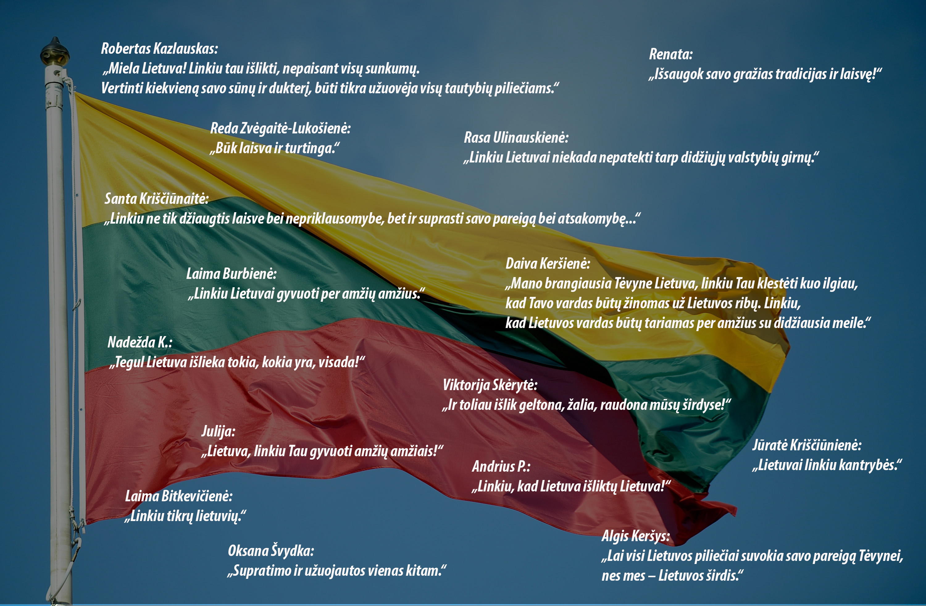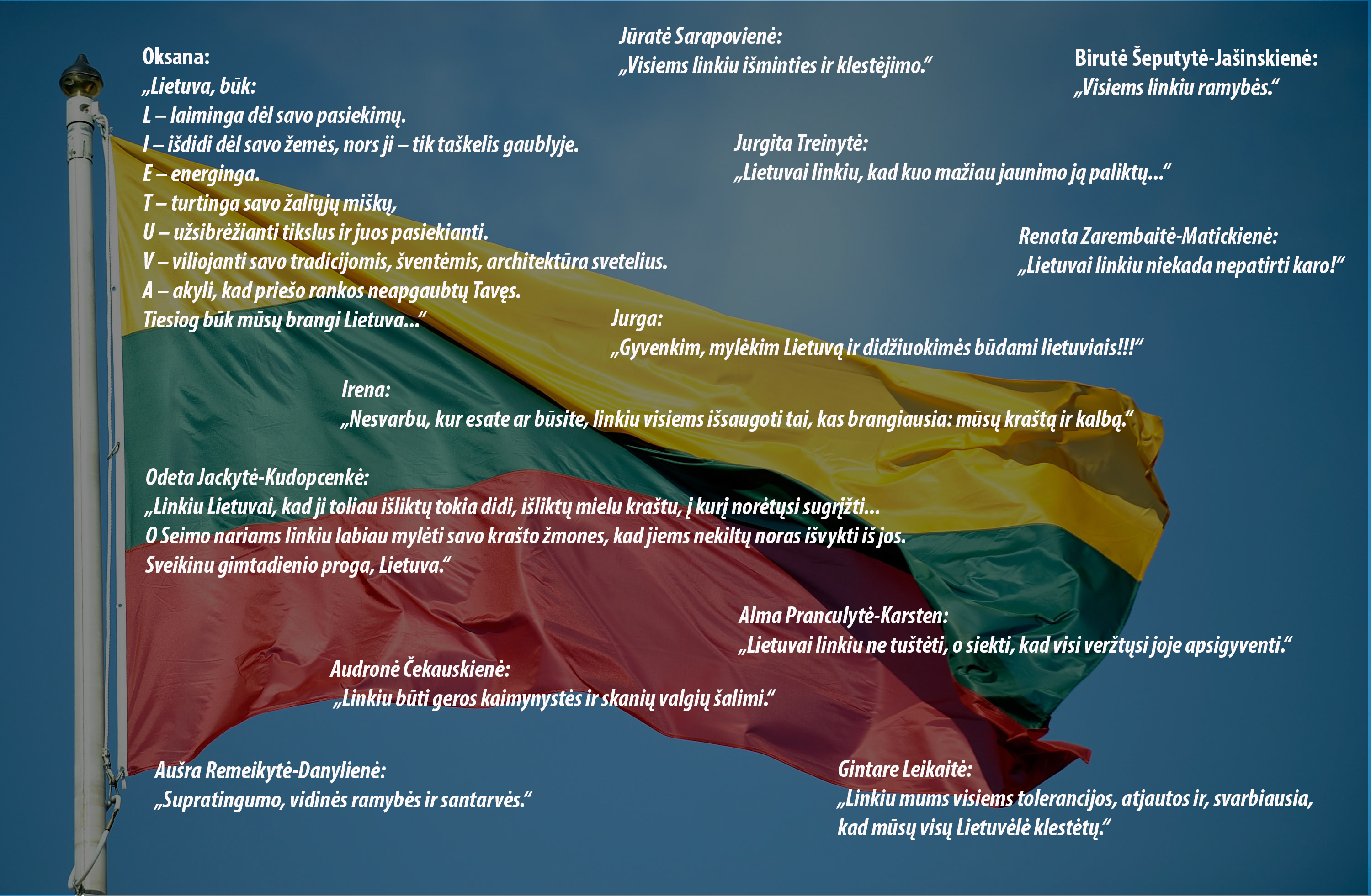 Portalas „Lietuvė“ paprašė skaitytojų Vasario 16-osios proga siųsti palinkėjimus Lietuvai. Dalijamės šiais linkėjimais su visais. Dėkojame Jums, mielieji!
